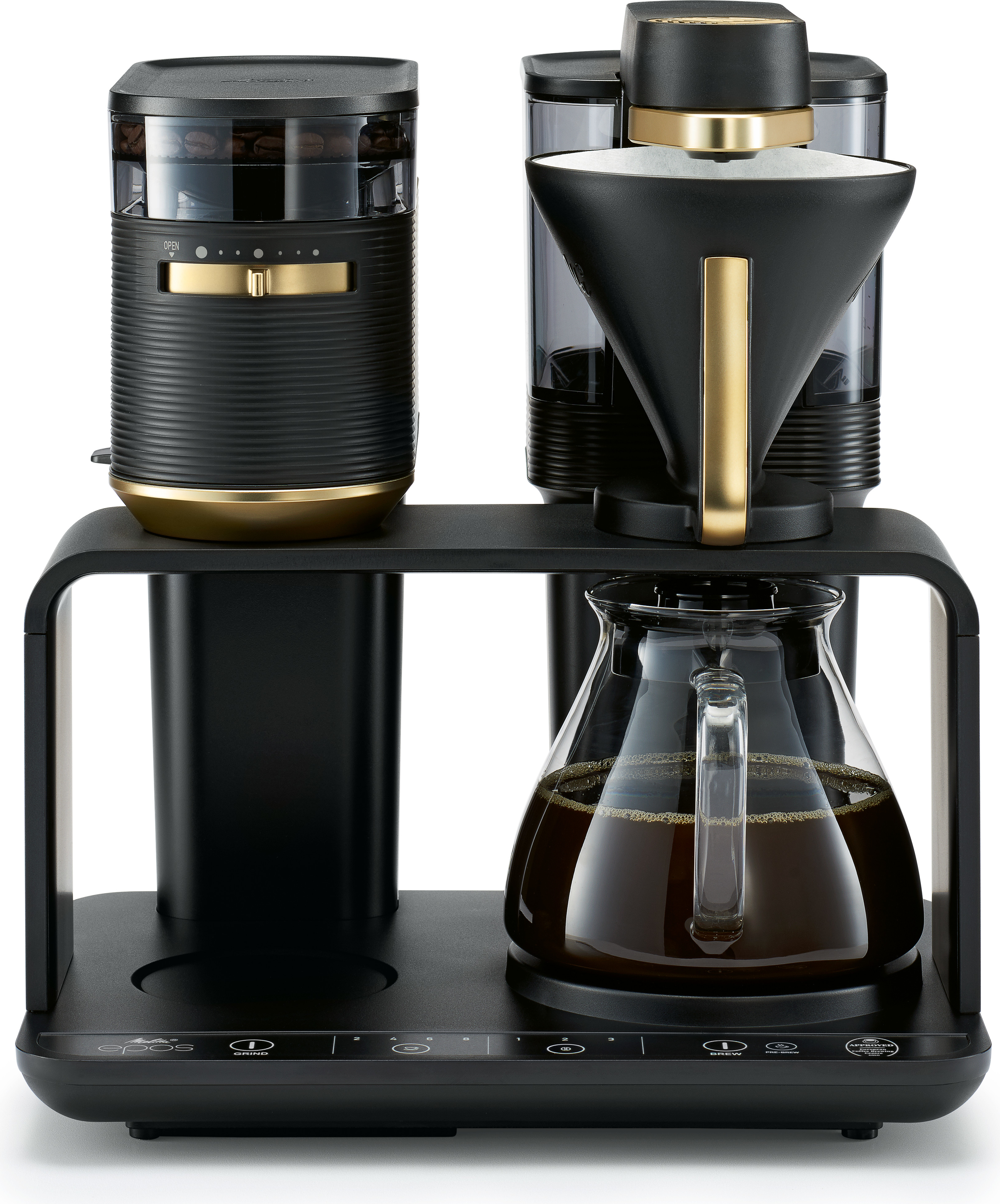 lieferbar-in 1-2 Werktagen bei dirMelitta Kaffeemaschine mit Mahlwerk EPOS® 1024-04, 1l Kaffeekanne, Papierfilter 1x4, Schwarz/Gold, 360°rotierender Wasserauslauf schwarz