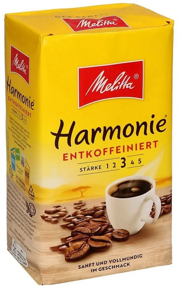 - - Melitta Kaffee Harmony. Gewicht: 500 g. Kaffeeart: Gemahlen. Koffeingehalt: nicht Koffeinfrei. Marke: Melitta. - Versandkostenfrei: false - - - bei viking.de - gefunden von shopping24 ![]() Melitta Kaffee Harmonie entkoffeiniert gemahlen 500G