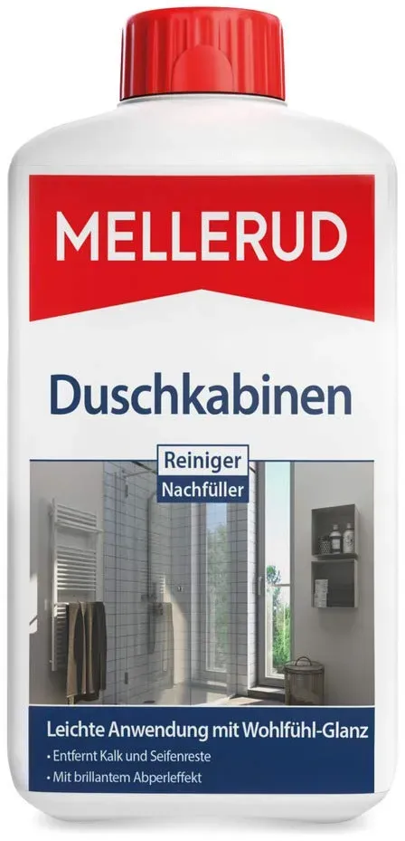 6 Händlerangebote bei billiger.de - Kategorie: Reinigungsmittel - Mellerud - Der MELLERUD Duschkabinen Reiniger verbreitet hygienische Sauberkeit im Badezimmer und beseitigt wirkungsvoll hartnäckige Kalk- und Seifenreste sowie unansehnliche Verschmutzungen und Eintrübungen Vielseitig einsetzbar: Der Reiniger lässt die Dusche wieder wie neu aussehen und verleiht Fliesen, Fugen, Glaswänden, Türen, Duschvorhängen und Duschtassen einen neuen Glanz Mithilfe der einzigartigen Formulierung hilft das zuverlässige Reinigungsmittel dabei, unansehnliche Ablagerungen zu lösen und das Entstehen neuer Verschmutzungen zu verhindern Den Inhalt der Nachfüllflasche in die Sprühflasche umfüllen und regelmäßig nach dem Duschen aufsprühen / Das Spray gleichmäßig verteilen, kurz einwirken lassen und mit Wasser abspülen Lieferumfang: 1 x 1 l MELLERUD Duschkabinen Reiniger Nachfüller / Entfernt Kalk und Seifenreste und bringt die Oberflächen zum Strahlen / Mit brillantem Abperleffekt und Langzeitschutz - GTIN:4004666002114 ![]() ![]() MELLERUD Duschkabinenreiniger - mit Abperleffekt, eBay Nachfüllflasche 1,0 L /#891708