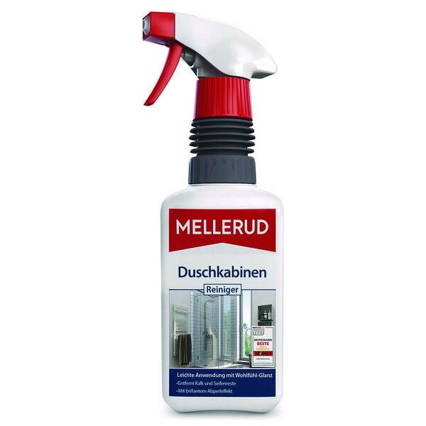 Auf Lager Versand durch AmazonMELLERUD Duschkabinen Reiniger | 1 x 0,5 l | Wirksames Spray gegen Kalk- & Seifenreste in der Dusche | Badreiniger mit Abperleffekt | Langzeitschutz | bringt verlorenen Glanz zurück