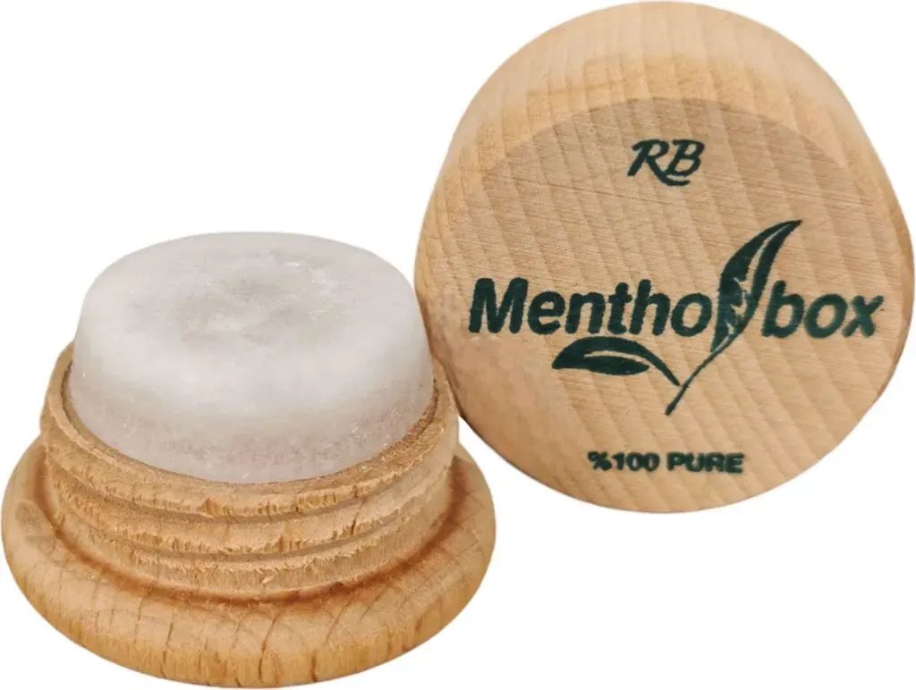 Auf Lager Versand durch AmazonMentholbox Mentholstein, Menthol Box, hilft Migräne zu lindern, erfrischende & kühlende Menthol-Macaron, zum Bestreichen von Stirn und Nacken, Menthol Spa Massage, reines Kristall-Menthol 1x6g