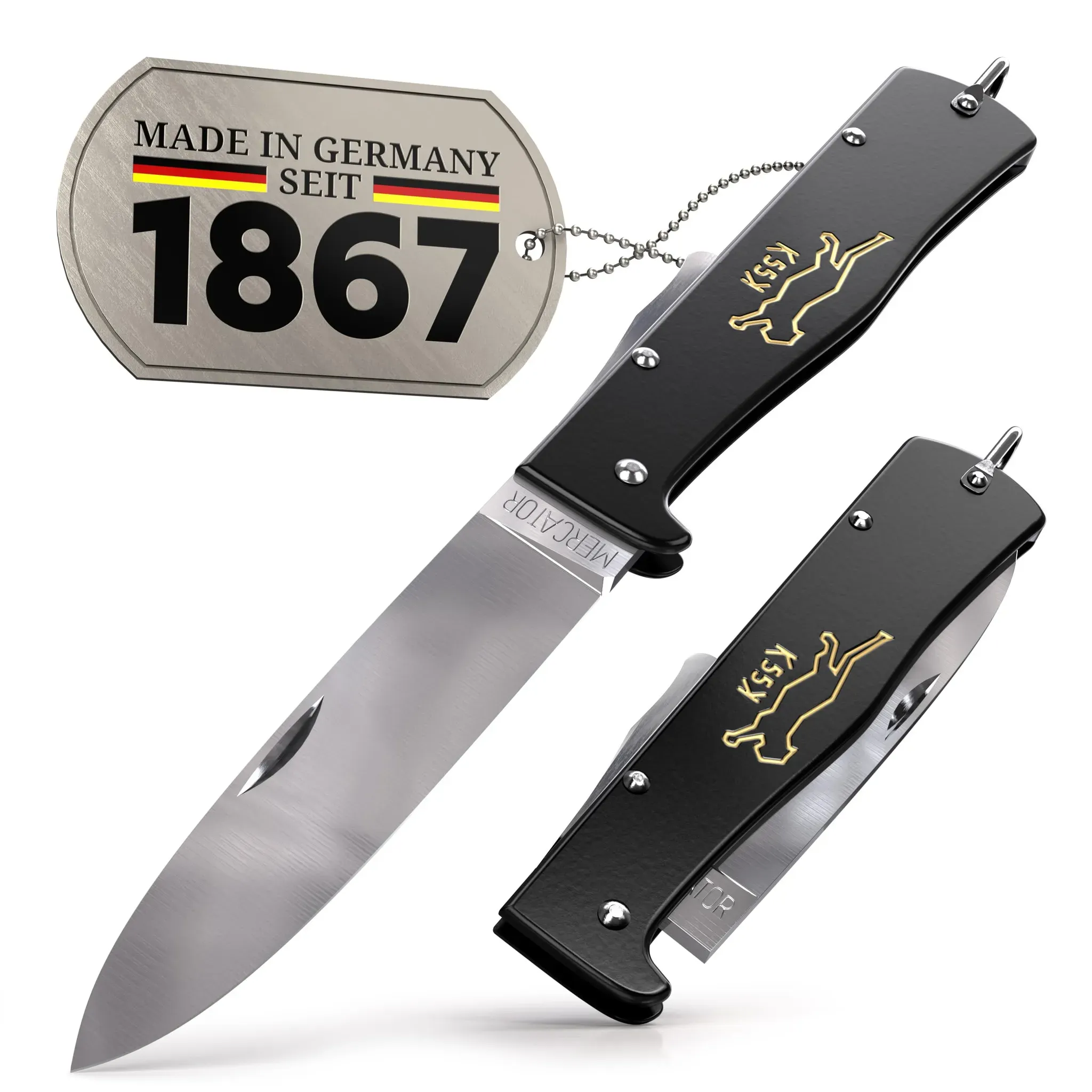 Auf Lager Versand durch AmazonDIYexpert Outdoor-Messer MERCATOR K55K Katze | [Klinge Carbon] | Klappmesser Made in Germany | Ideal als Taschenmesser oder Jagdmesser