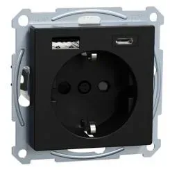Sofort verfügbar (Lieferzeit 1-3 Werktage)Merten SCHUKO-Steckdose mit USB Ladegerät A+C, System M, schwarz matt (lackiert)