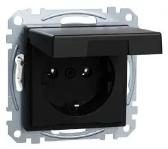 Auf Lager Versand durch AmazonSchneider Electric Merten Schuko-Steckdose mit Klappdeckel, Berührungsschutz, Steckklemmen, System M, schwarz matt, Artikelnummer MEG2310-0403