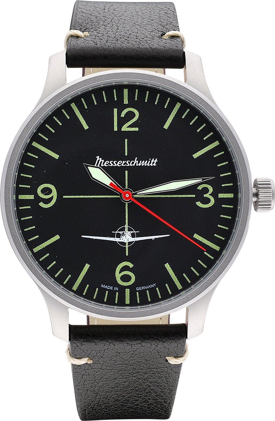 Kategorie: Herrenuhren - Messerschmitt - GTIN:4262436840780 - Made in Germany, attraktive Armbanduhr für Männer, mit Quarzwerk Ronda 515, Anzeige von Datum und Wochentag, schwarzes Zifferblatt, lumineszierende Zeiger, Zahlen und Indizes, zentraler roter Sekundenzeiger, Gehäuse aus mattiertem Edelstahl, verschraubter Gehäuseboden, geriffelte Krone, kratzunempfindliches Mineralglas, Armband aus schwarzem Leder mit beigen Vintage-Nähten, matte Dornschließe, wasserdicht bis 5 bar, Breite (ohne Krone) 42 mm, Höhe 10 mm - 198,00 Euro bei uhrcenter - gefunden von billiger.de ![]() ![]() MESSERSCHMITT Herren-Fliegeruhr - DayDate Schwarz eBay ME-6332-108