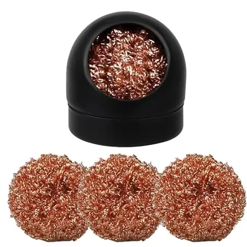Auf Lager Versand durch AmazonLötspitzenreiniger Lötkolben-Spitze Reiniger und Halter, Weich Gewickelte Messing-Spitzenreiniger-Kit Reinigungsdraht Scrubber Reiniger (4 Messingkugeln, Schwarz)