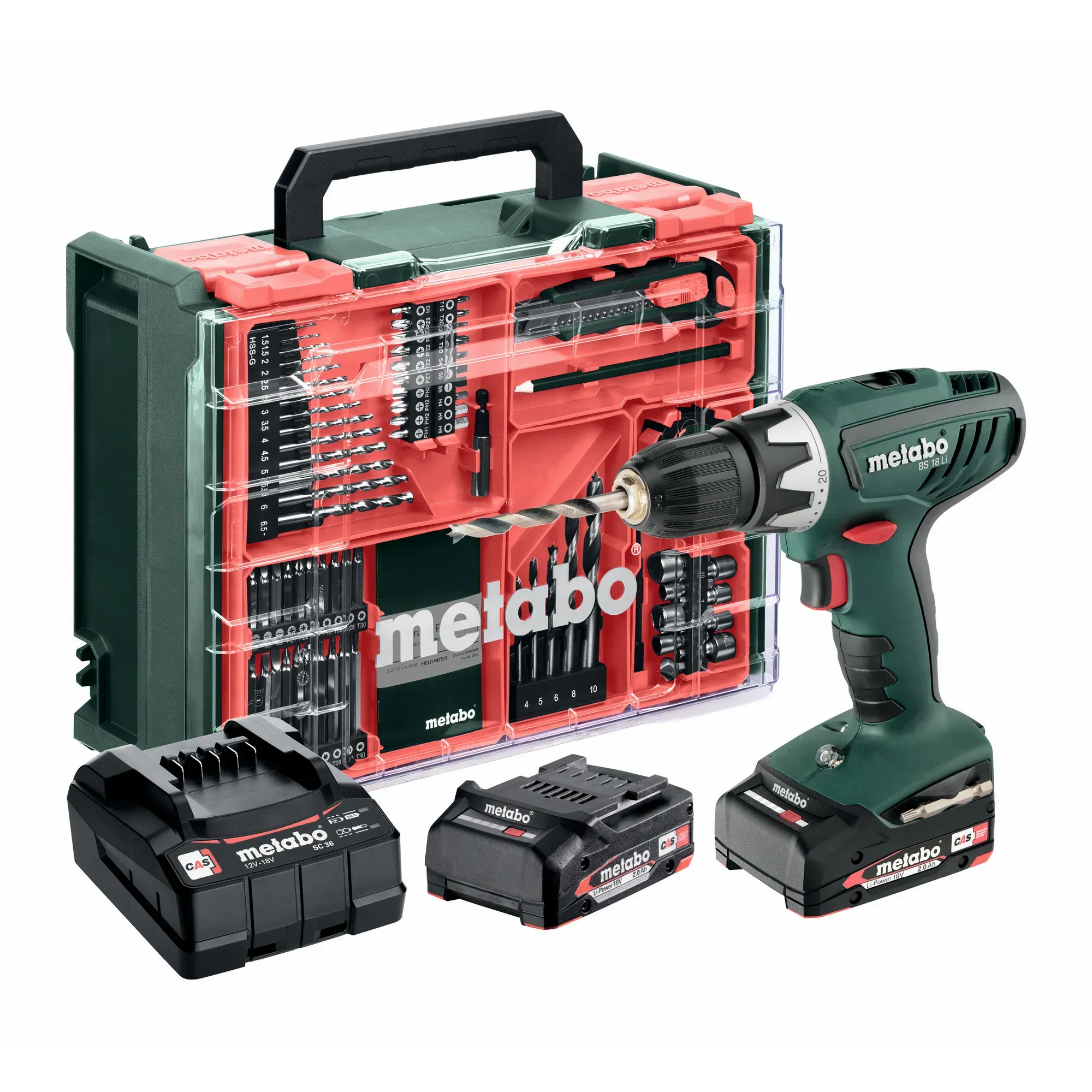 Auf Lager Versand durch Amazonmetabo Akku-Bohrschrauber BS 18 Set - 18 V, 74-tlg. Mobile Werkstatt - Schnellspannbohrfutter, Gürtelhaken, LED-Arbeitslicht - Inkl. 2 x Akku LiPOWER (2.0 Ah), Ladegerät und Kunststoffkoffer