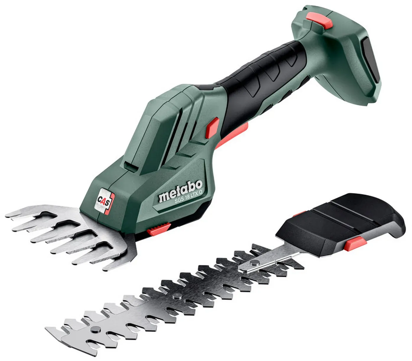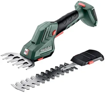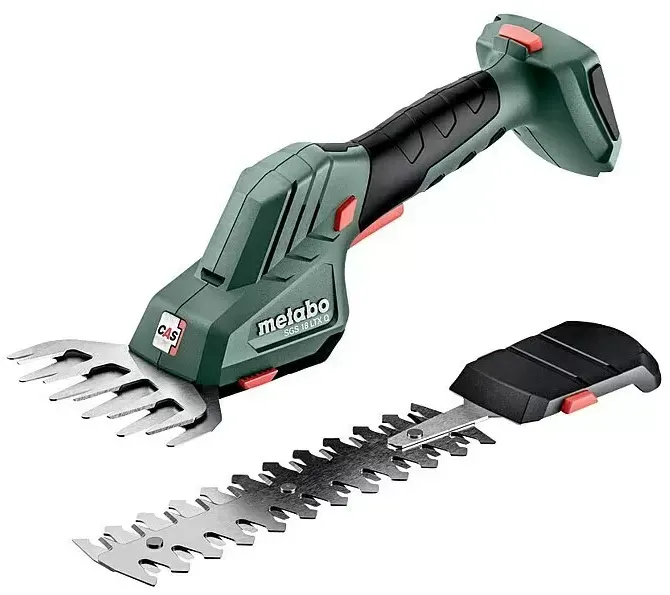 Kategorie: Strauchscheren - Metabo - GTIN:4061792185074 - Die Metabo Akku Strauch- und Grasschere ist das perfekte Allround-Werkzeug, wenn es um präzise Gartenarbeiten geht. Vom Schneiden von Gras bis zum Stutzen von Sträuchern. Mit ihrem leistungsstarken 18 V Akku ermöglicht sie kabelloses und flexibles Arbeiten, sodass Sie sich frei im Garten bewegen können, ohne durch Kabel eingeschränkt zu werden. Die wechselbaren Messer lassen sich einfach und werkzeuglos austauschen, wodurch Sie im Handumdrehen zwischen Grasschneiden und Strauchpflege wechseln können. Dank des ergonomischen, leichten Designs liegt die Schere besonders angenehm in der Hand, sodass auch längere Gartenarbeiten mühelos von der Hand gehen. Die lange Akkulaufzeit sorgt dafür, dass Sie auch bei intensiver Nutzung nicht ständig unterbrechen müssen. Mit der Metabo Akku Schere genießen Sie höchste Flexibilität, Präzision und Effizienz auf dem höchsten Niveau. Perfekt für Hobbygärtner, die Ihren Garten ohne großen Aufwand optimal pflegen wollen. # CAS 18V Akkuallianz herstellerübergreifende, kabellose Freiheit! Dieser Artikel ist Teil der CAS 18V Akkuallianz (Cordless Alliance System), dem herstellerübergreifenden Akku-System führender Elektrowerkzeugmarken, das auf der Akku-Kompetenz von Metabo basiert. Ein und derselbe 18V CAS Akku ist zu 100% kompatibel mit allen 18V Geräten der CAS Partner. Dazu zählen neben Metabo verschiedene Elektrowerkzeugmarken mit klarem Fokus auf professionelle Anwendungen wie ... Ein gutes Preis-Leistungs-Verhältnis für die Akku-Grasschere ohne Zubehör. ![]() ![]() Metabo SGS 18 LTX Q Akku-Grasschere 18 V Schwarz - Grün (601609850)