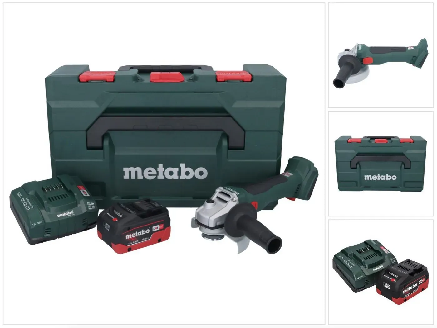 Kategorie: Winkelschleifer - Metabo - GTIN:4061792231146 - Akku-Winkelschleifer W 18 L BL 9-125 metaBOX 165 L - 18V 2x4Ah Li-Power + ASC 55 von MetaboServicefreier Brushless Motor mit höchster Effizienz bei maximaler HandlichkeitSchlanke Bauform für ermüdungsarmes ArbeitenWerkzeuglos verstellbare Schutzhaube; verdrehsicher fixierbarElektronische Sicherheitsabschaltung: reduziert Kick-Back beim Blockieren der Scheibe - für hohen Anwenderschutzüberlastschutz: schützt den Motor vor überhitzungElektronischer Sanftanlauf für ruckfreies AnlaufenWiederanlaufschutz: verhindert unbeabsichtigtes Anlaufen nach AkkuwechselMit metaBOX, der intelligenten Lösung für Transport und AufbewahrungViele Marken, ein Akku-System: Dieses Produkt ist kombinierbar mit allen 18V-Akkupacks und Ladegeräten der CAS Marken: www.cordless-alliance-system.comLieferumfang: Schutzhaube, Stützflansch, Zweilochmutter, Zusatzhandgriff, Zweilochschlüssel, 2 Li-Power Akkupacks (18 V/4, - 304,50 Euro bei tuul.zone - gefunden von billiger.de Dieses Angebot ist das günstigste ohne Akku und Ladegerät, perfekt für Nutzer, die bereits im Metabo CAS System sind. ![]() ![]()