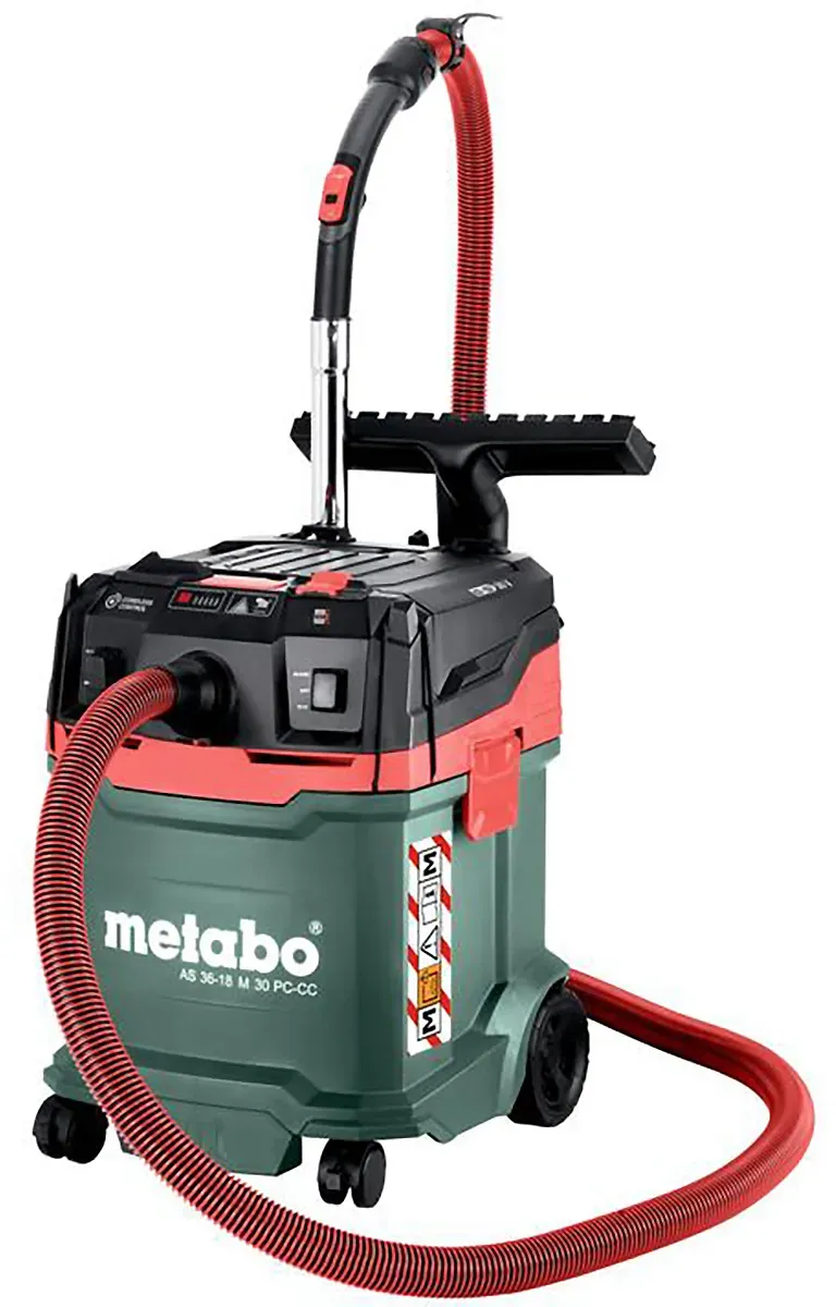 Verfügbarkeit: 5-7 Werktage - Kategorie: Nass-/Trockensauger - Metabo - GTIN:4061792230620 - Akku-Sauger AS 36-18 M 30 PC-CC mit manueller Filterabreinigung und CordlessControl - von MetaboKompakter, vielseitig einsetzbarer Akku-Sauger der Staubklasse M mit integrierter FilterabreinigungCordlessControl: der Sauger startet/stoppt automatisch beim Ein-/Ausschalten des am Schlauch angeschlossenen Akku-Werkzeugs von Metabo oder anderen MarkenNass-/Trockensauger mit gewerblicher ZulassungHoher Anwenderschutz: zertifiziert nach EU-Norm für Stäube der Staubklasse MPressClean: manuelle Filterabreinigung durch starken Luftstrom bei Schalterbetätigung am Sauger in den ArbeitspausenEco-Modus für längere Laufzeit pro Akkuladung, Boost-Modus für maximale LeistungNachlaufautomatik zum völligen Entleeren des SaugschlauchesSaugstopp beim Nasssaugen, wenn die maximale Füllhöhe erreicht wirdWarnsignal bei Unterschreitung des Mindestvolumenstroms zum Schutz des AnwendersAntistatik-Grundausstattun - 393,90 Euro bei tuul.zone - gefunden von billiger.de Dieses Modell der H-Klasse mit CordlessControl ist die Top-Empfehlung für anspruchsvolle gewerbliche Anwendungen mit gefährlichen Stäuben. ![]() ![]() Metabo Akku-Nass-/Trockensauger AS 36-18 H 30 PC-CC (602075850) mit manueller Filterabreinigung und CordlessControl