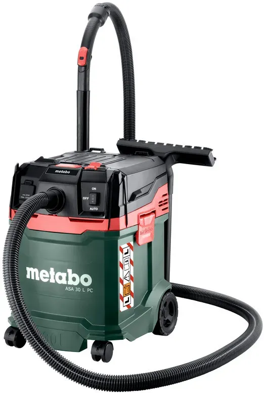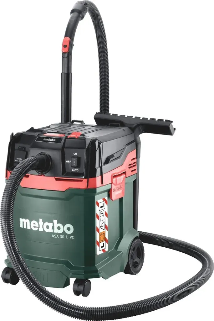Kategorie: Nass-/Trockensauger - Metabo - GTIN:4061792230743 - Eigenschaften: Kompakter, vielseitig einsetzbarer Sauger der Staubklasse L mit integrierter Filterabreinigung Schnelles Koppeln von metaBOXen mit Werkzeug und Zubehör auf dem Sauger für einfachen Standortwechsel Nass-/Trockensauger mit gewerblicher Zulassung Zum Absaugen an Elektrowerkzeugen und zum Reinigen von Baustelle, Werkstatt usw Gerätesteckdose für ein Elektrowerkzeug zur Nutzung der Ein-/Ausschaltautomatik des Saugers PressClean: manuelle Filterabreinigung durch starken Luftstrom bei Schalterbetätigung am Sauger in den Arbeitspausen Anwenderschutz: zertifiziert nach EU-Norm für Stäube der Staubklasse L Saugstopp beim Nasssaugen, wenn die maximale Füllhöhe erreicht wird Nachlaufautomatik zum völligen Entleeren des Saugschlauches Antistatik-Grundausstattung verhindert statische Aufladung bei Verwendung des geeigneten Zubehörs Einfacher Transport dank Kabel- und Schlauchhalterung sowie Depot für Rohre und Düsen Praktisches Zubehör-Depot und Ablagefläche Praktisches Zubehörfach mit Klappdeckel für Kleinteile Mitgeliefertes Saugerzubehör mit Quick-System für schnelles Umrüsten im Einsatz Lieferumfang: Saugschlauch Quick ( 32 mm / 3,2 m) Anschlussmuffe Quick 28/35 mm Handgriff-Zwischenstück Quick Professional 3x Saugrohre aus Kunststoff Vliesfilterbeutel Fugendüse Bodendüse (300 mm breit) Saugdüse (120 mm breit) - 199,90 Euro bei Contorion.de - gefunden von billiger.de Der Metabo ASA 30 L PC Allessauger in Schwarz/Grün/Rot ist ein optisch ansprechendes und funktionales Gerät für den universellen Einsatz. ![]() ![]() Metabo ASA 30 L PC Allessauger - Schwarz/Grün/Rot
