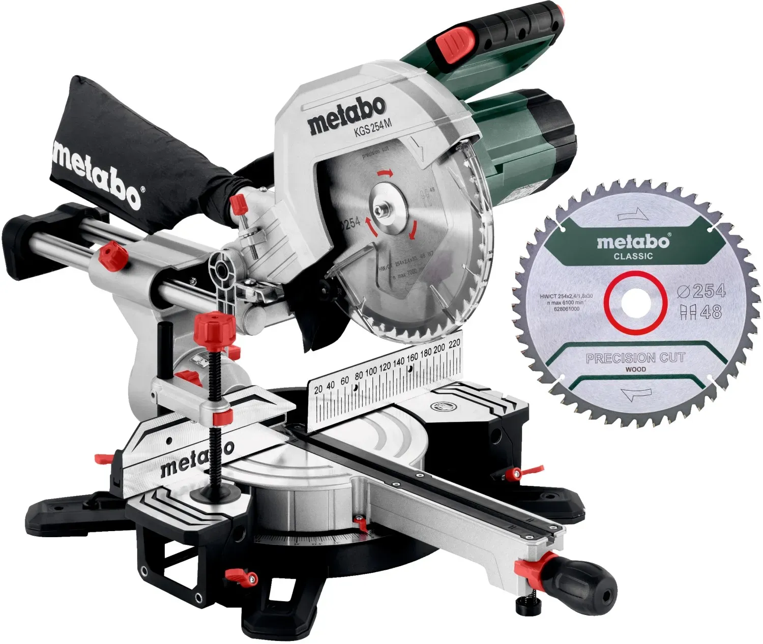 Auf Lager Versand durch AmazonMetabo Kapp- und Gehrungssäge Set KGS 254 M ? 613254900 ? Mit Precision Cut Line, 254 mm 2. Hartmetall-Sägeblatt und Zugfunktion ? 2 m Kabellänge