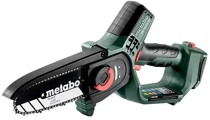 Kategorie: Kettensägen - Metabo - GTIN:4061792245402 - Die Metabo Akku-Gehölzsäge bietet Ihnen kabellose präzise Schnittarbeiten an ästen und Gehölzen. Mit ihren kraftvollen 18 V und dem kompakten Design ist sie ideal für Arbeiten an schwer zugänglichen Stellen und rt saubere Schnitte perfekt für die Baumpflege oder das Zurückschneiden von Sträuchern. Dank des werkzeuglosen Kettenwechsels ist die Säge im Handumdrehen einsatzbereit, was für zusätzliche Effizienz sorgt. Ob für den professionellen Einsatz oder die anspruchsvolle Gartenpflege die Metabo Akku-Gehölzsäge vereint Leistung, Flexibilität und einfache Handhabung in einem kompakten Gerät, das Sie zuverlässig bei all Ihren Gartenprojekten unterstützt. # CAS 18V Akkuallianz herstellerübergreifende, kabellose Freiheit! Dieser Artikel ist Teil der CAS 18V Akkuallianz (Cordless Alliance System), dem herstellerübergreifenden Akku-System führender Elektrowerkzeugmarken, das auf der Akku-Kompetenz von Metabo basiert. Ein und derselbe 18V CAS Akku ist zu 100% kompatibel mit allen 18V Geräten der CAS Partner. Dazu zählen neben Metabo verschiedene Elektrowerkzeugmarken mit klarem Fokus auf professionelle Anwendungen wie Rothenberger, Collomix, Steinel, Prebena, Fischer und viele mehr. Ihre Vorteile * Sie sparen Geld und Zeit: Ein einziger Akku für zahlreiche Arbeiten. Keine Suche mehr nach dem richtigen Akku. * Sie sparen Platz und Mühe: Ein einheitliches Akkusystem für einen einfachen Wechsel zwischen den Geräten und mehr ... Dieses Set bietet einen guten Kompromiss aus Preis und Leistung, da es das Gerät mit einem Akku und einer Tasche für den sofortigen Einsatz liefert. ![]() ![]() Metabo MS 18 LTX 15 inkl. 1 x 2,0 Ah Akku + Tasche
