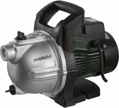 EAN: 4007430240767 - Metabo Gartenpumpe P 4000 GZur Gartenbewässerung und Grundwasserförderung sowie zum Fördern, Auspumpen und Umwälzen von KlarwasserWartungsfreier Kondensatormotorüberlastschutz: schützt den Motor vor überhitzungHochwertiges Gleitringdichtungssystem für lange LebensdauerSeparate Wasser-Einfüllöffnung für einfache Inbetriebnahme der PumpeWerkzeuglose Wasser-Ablassschraube zum Schutz bei FrostgefahrGummierte Füße für geräusch- und vibrationsarmen BetriebErgonomischer Tragegriff für bequemen TransportFür die Gartenbewässerung mit 1 bis 3 RegnernTechnische DetailsNennaufnahmeleistung: 1100 WMax. Fördermenge: 4000 l/hMax. Förderhöhe: 46 mMax. Druck: 4.6 barMax. Ansaughöhe: 8 mSauganschluss: 1' InnengewindeDruckanschluss: 1' InnengewindePumpengehäuse: GraugussAntriebswelle: EdelstahlAnzahl der Laufräder: 1Abmessungen: 380 x 210 x 290 mmGewicht: 12.2 kgKabellänge: 1.5 mSchalldruckpegel: 70 dB(A)Schallleistungspegel (LwA): 82.4 dB(A)Messunsicherheit K3: dB(A)LieferumfangGartenpumpeGewindedichtbandMetabo Qualitätswerkzeuge 1923 baute Albrecht Schnizler die erste Handbohrmaschine. Dieser Metallbohrdreher ist Pate für den Namen Metabo. Heute beschäftigt das Traditionsunternehmen knapp 2.000 Mitarbeiter, davon 1.200 in Nürtingen, Deutschland. 25 Tochtergesellschaften und mehr als 100 Vertretungen sorgen dafür dass die Premium Lösungen von Metabo in fast allen Ländern zu finden sind. Produktbeschreibung:Die Metabo Gartenpumpe P 4000 G ist die ideale Lösung für die ... Ein faires Angebot von Manomano, das eine gute Option für Heimwerker darstellt. ![]() Manomano.d e