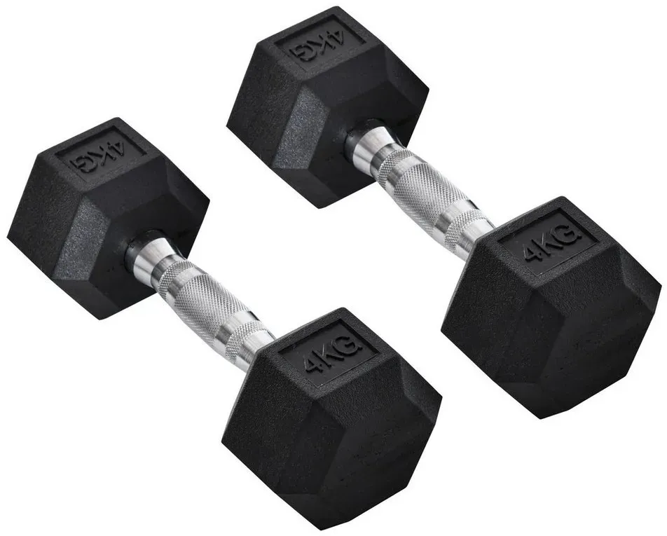lieferbar-in 5-6 Werktagen bei dirMC Star Hantel-Set Hexagon Kurzhanteln 2er Set Gusseisen Hanteln Griff gerändelt, (Kurzhantelset Gewichte Metall Gummi schwarz 2 x 4 KG)