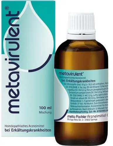 meta Fackler Arzneimittel - Metavirulent Mischung, 100 ml - bei claras-apotheke.de - aus Yadore Produktdaten ![]() ![]() meta Fackler Arzneimittel GmbH METAVIRULENT Mischung 100 ml