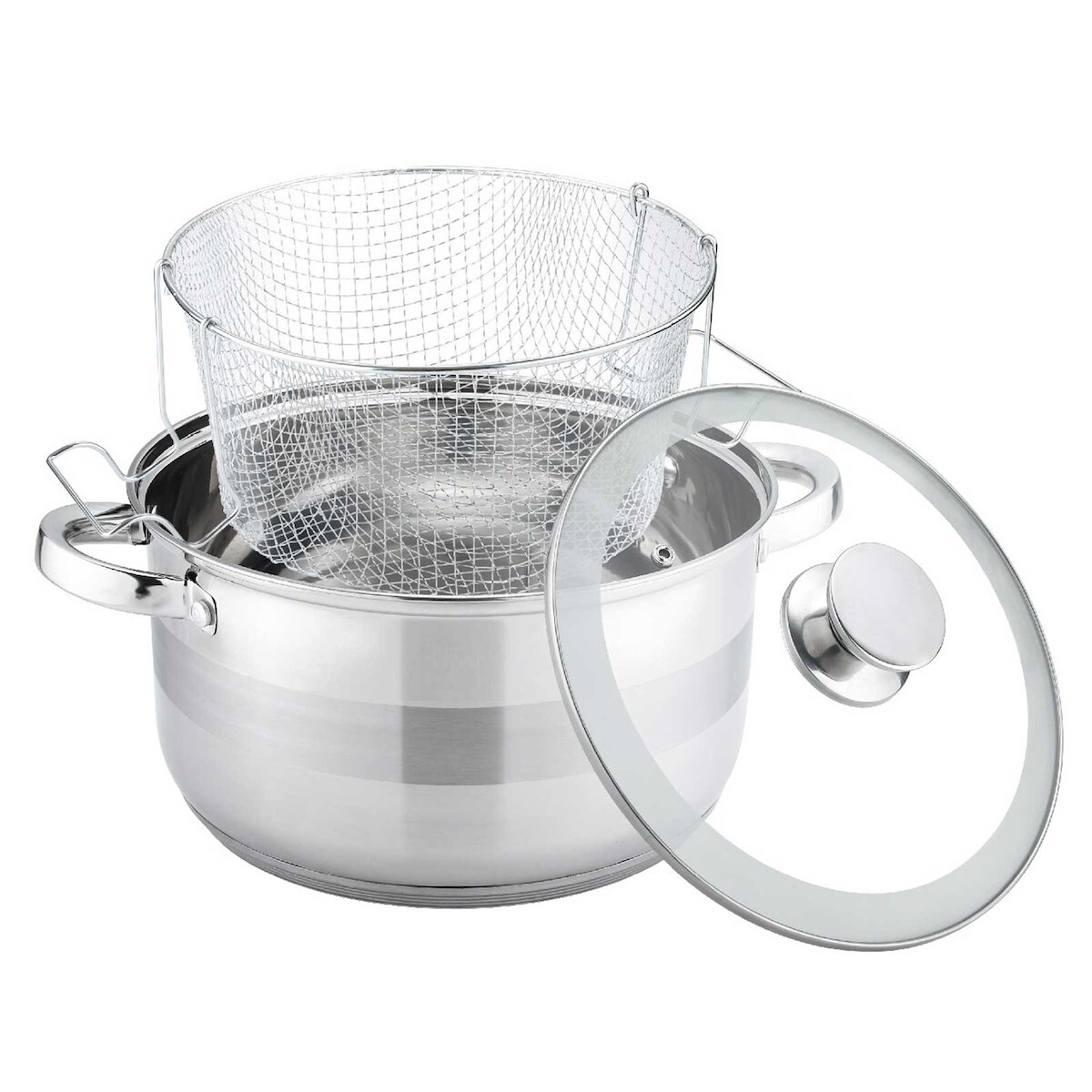 Zustand: Neu - Zubehör für Friteusen - METRO Professional ANHUI Hualing Kitchen Equipment Co. - GDFB1004 - EAN: 4337255468061 - Hochwertiges Material: Hergestellt aus lebensmittelechtem Edelstahl 304 18/8, bietet der Frittierkorb eine robuste und langlebige Konstruktion Hitzebeständiger Griff: Der Griff des Korbs ist aus hitzebeständigem PBT gefertigt, was eine sichere Handhabung während des Frittiervorgangs gewährleistet Großzügiges Fassungsvermögen: Mit einem Fassungsvermögen von 4 Litern bietet der Frittierkorb ausreichend Platz für die Zubereitung größerer Mengen von frittierten Speisen Praktische Abmessungen: Mit Abmessungen von 15,8 x 21,9 x 12,5 cm (B x T x H) passt der Korb gut in handelsübliche Fritteusen und bietet dennoch ausreichend Platz für die Speisen Attraktives Design: Das silberne und schwarze Design verleiht dem Frittierkorb ein modernes und ansprechendes Aussehen, das sowohl in kommerziellen Küchen als auch zu Hause gut aussieht - Verkäufer: Gastro & Office im amazon.de Marketplace ![]() 4BIG.fun Frittiertopf 6,5 L Edelstahl Glasdeckel Induktion Friteuse Pommestopf Fritöse