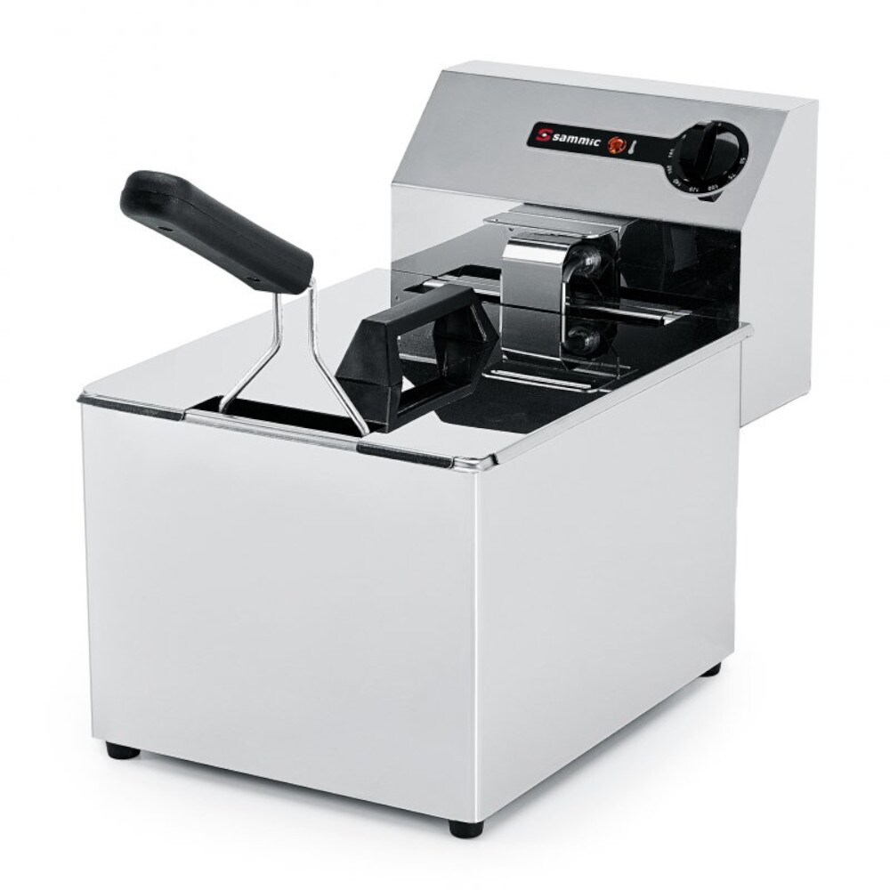 Zustand: Neu - Tiegelfritteusen - METRO Professional MCC Trading International GmbH - GDF3028 HDF-8+8C-N - EAN: 4337147752971 - Abmessungen (B x T x H): - Produkt: 55 x 55,8 x 39 cm - Körbe: 19 x 24 x 14 cm Die METRO Professional double Friteuse arbeitet in einem Temperaturbereich zwischen 25°C - 190°C und erhitzt das Öl in 3 Minuten von 130°C auf 180°C. Es hat eine Leistung von 3250 W pro Fach (2 x 3250 W). Dieses Küchengerät zeichnet sich durch ihr professionelles Aussehen aus. Es besteht aus einer Edelstahlkörper mit einem Fach für zwei Körbe mit einem Fassungsvermögen von je 8 Litern (insgesamt 16 Liter) und zwei Deckeln aus demselben Material. Das produkt wird mit zwei pommes körbchen augestattet. Die elektrische Friteuse vergücht über verschiedene Elemente, die das Frittieren einfacher, komfortabler und präziser machen: mechanischer Temperaturregler, Kontrollleuchten, die anzeigen, wann mit dem Frittieren begonnen werden kann, Reset-Funktion und Überhitzungsschutz (bei 230°C), EGO-Thermostat (0-190°C) und eine maximale und minimale Fülllinie. Weitere Merkmale machen dieses Gerät zu einem ausgezeichneten Kauf. Für sauberes und sicheres Arbeiten bietet diese Fritteuse hitzebeständige Kunststoffgriffe und -deckel, eine Kaltzone und einen Regler sowie zwei rutschfeste Füße auf der Bodenfläche, um Unfälle zu vermeiden. Das Bedienfeld ist abnehmbar für eine einfache Reinigung. Geeignet zum Frittieren von verschiedenen Lebensmitteln wie Fisch, Gemüse, Hähnchenflügeln oder ... ![]() Elektro-Friteuse - SAMMIC PF-6 mit 5 Liter Fassungsvermögen