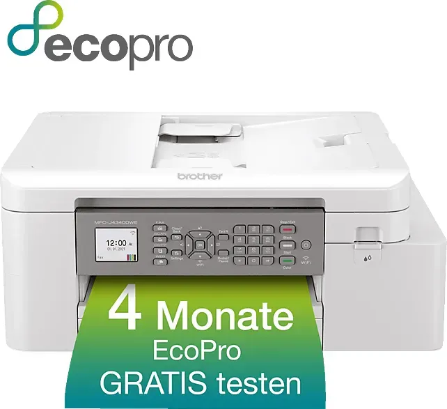 Brother - EAN: 4977766825184 - Was ist EcoPro? EcoPro ist ein intelligenter Abonnementservice von Brother, der sich an Ihren Druckanforderungen orientiert, und automatisch Tinte und Toner bestellt und an Sie liefert, wenn Sie sie brauchen - zu einem Bruchteil der Kosten, die gegenüber dem Einzelkauf anfallen. Schon ab 1,99 pro Monat können Sie Ihr Abonnement, je nach Druckvolumen, auswählen und müssen sich nie wieder Sorgen machen, dass Ihnen die Tinte oder der Toner ausgehen. Warum EcoPro? Im Rahmen eines EcoPro Abonnements müssen Sie sich dem Problem leerer Tintenpatronen nie wieder stellen. Der Drucker erkennt automatisch, wenn der Vorrat zur Neige geht und bestellt die benötigte Tinte direkt zu Ihnen nach Hause, sodass Sie immer über einen vollen Vorrat verfügen und druckbereit bleiben. Mit ihrem EcoPro können Sie ein Abomodell wählen, dass Ihrem Druckaufkommen entspricht, egal ob Sie einen Tintenstrahl- oder Monolaserdrucker nutzen, 50 Seiten pro Monat oder 500 Seiten pro Monat drucken - Brother hat den richtigen Tarif für Sie. Nicht sicher, wie viel Sie drucken? Kein Problem. Wählen Sie einen Tarif für ihr Abonnement, der Ihrem Druckverbrauch am ehesten entspricht. Nicht benötigte Seiten können bis zu zwei Monate übertragen werden. - bei mediamarkt.de - aus Yadore Produktdaten alternate.de bietet den Multifunktionsdrucker für 159.90 Euro an, ein etablierter Händler für Elektronik. ![]() Brother MFC-J4340DWE, Multifunktionsdrucker