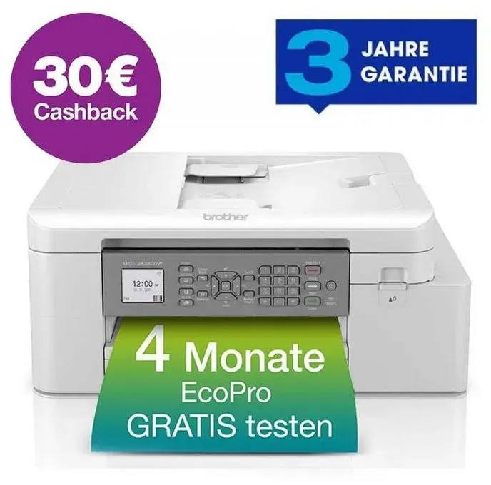 Verfügbarkeit: Auf Lager - Kategorie: Multifunktionsdrucker - Brother - GTIN:4977766825184 - MULTIFUNKTIONSGERäT: Drucken, kopieren, scannen, faxen DRUCKGESCHWINDIGKEIT: Bis zu 20 Seiten/Min. in S/W und 19 Seiten/Min. in Farbe drucken HERSTELLER Vor-Ort. Die bedingungen finden Sie unter €žWeitere technische Informationen€œ. Ihre gesetzlichen Gewährleistungsrechte bleiben unberührt. ECO-PRO KOMPATIBEL: Melden Sie Ihr kompatibles Druckermodell an und erhalten Sie Ihr Verbrauchsmaterial automatisch nach Hause geliefert. CONNECTIVITY: USB 2.0, WLAN LIEFERUMFANG: 4 Monate EcoPro Abo inkl., Starterpatronen, Netzkabel, Installationsanleitung. Datenkabel sowie Faxanschlusskabel sind NICHT im Lieferumfang enthalten. Ein Faxanschlusskabel können Sie kostenfrei bei Brother anfordern. Eine CD-ROM ist nicht im Lieferumfang enthalten. - 159,99 Euro bei Amazon Marketplace Automotive - gefunden von billiger.de expert.de listet den Eco Pro Multifunktionsdrucker für 165 Euro, ein vertrauenswürdiger Anbieter. ![]() ![]() MFC-J4340DWE Eco Pro Multifunktionsdrucker, Weiß