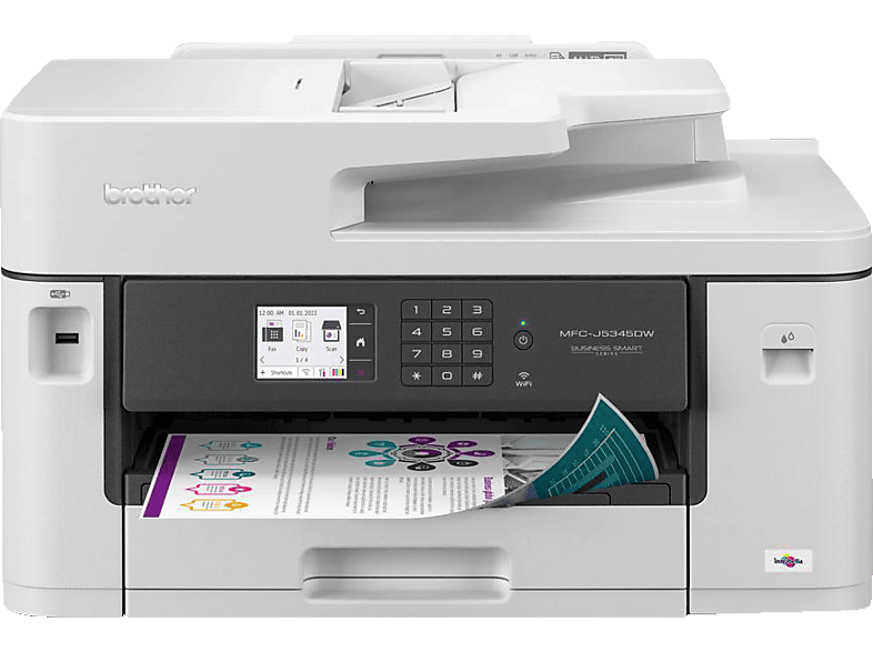 Kategorie: Multifunktionsdrucker - Brother - GTIN:4977766817844 - Das 4-in-1 Tinten-Multifunktionsgerät MFC-J5345DW mit DIN A3 Druckfunktion erfüllt die Anforderungen anspruchsvoller kleiner Büros und Arbeitsgruppen. Dank DIN A3 Druckfunktion können Sie problemlos eine Vielzahl von A3- und A4-Farbdokumenten erstellen. Genießen Sie dabei hochwertige Qualität, schnelle Druckgeschwindigkeiten und niedrige Betriebskosten. Dieses Multifunktionsgerät bietet eine Druck-, Kopier-, Scan- und Faxfunktion. Drucken Sie direkt von Ihrem Arbeitsplatz, einem Besprechungsraum oder Ihrem Mobilgerät aus - dank drahtloser WLAN-Verbindung. - 189,00 Euro bei Media Markt Online Shop - gefunden von billiger.de Saturn.de bietet hier einen sehr günstigen Preis für das 4-in-1 Multifunktionsgerät. ![]() BROTHER MFC-J5345DW 4-in-1 Multifunktionsgerät