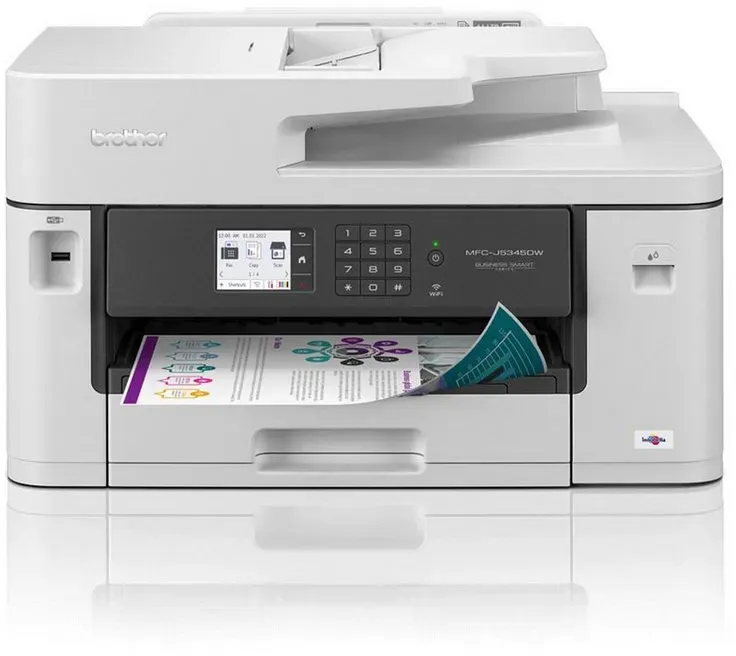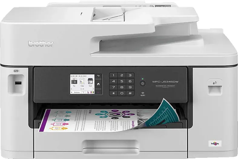 Mfc-j5345dw META PreisvergleichMit dem Meta-Preisvergleich suchen Sie gleichzeitig bei den großen Preisvergleich Portalen!Jetzt live Suche nach mfc-j5345dw starten! Mfc-j5345dw KaufberatungDas Brother MFC?J5345DW ist ein A3?fähiges 4?in?1?Tinten?Multifunktionsgerät (Drucken, Scannen, Kopieren, Fax) für kleine Büros mit Duplexdruck, ADF und WLAN/ LAN?Anbindung — wichtig sind Druckformat (A3), Druckkosten/Tintenversorgung, Druckvolumen, Anschlussoptionen und Support/Servicebedingungen[1][3]. Konkrete Geräte?Kerndaten, die Sie beachten sollten: Druckformat bis DIN A3, Druckauflösung bis zu 4.800 × 1.200 dpi und Druckgeschwindigkeit bis zu 28 Seiten/Min. in S/W und Farbe[1][2][3]. Papierhandhabung und Dokumentzuführung: 250?Blatt?Papierkassette, Einzelblatteinzug, 50?Blatt?ADF und automatischer beidseitiger Druck (Duplex)[1][2]. Scan?/Kopierdetails: Scanauflösung bis 1.200 × 2.400 dpi (je nach Quelle) und Kopiergeschwindigkeit in der Praxis niedriger als Drucktempo (Herstellerangaben für Kopie bis zu 25-16 Seiten/Min.)[2][1]. Konnektivität und Bedienung: USB, LAN, WLAN, mobiles Drucken (AirPrint, Mopria, Brother iPrint&Scan) sowie 6,8-6,9 cm Farb?Touchscreen[1][2][4]. Empfohlenes Nutzungsszenario und Druckvolumen: Gerät wird für kleine Büros/Arbeitsgruppen empfohlen; Brother gibt ein empfohlenes durchschnittliches Druckvolumen von ca. 250-2.500 Seiten/Monat an[4]. Was bei der Kaufentscheidung besonders ins Gewicht fällt