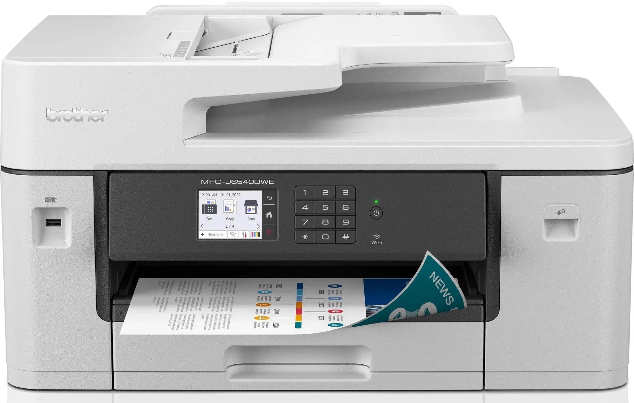 30 Händlerangebote bei billiger.de - Kategorie: Multifunktionsdrucker - Brother - Der professionelle A3-All-in-One-Drucker MFC-J6540DW ist auf Langlebigkeit ausgelegt und erfüllt die Anforderungen von anspruchsvollen kleinen Büros und Arbeitsgruppen. Dank seiner A3-Fähigkeit können Sie mühelos eine Vielzahl von A3- und A4-Farbdokumenten erstellen und dabei von hochwertigen Ausdrucken, hohen Druckgeschwindigkeiten und niedrigen Betriebskosten profitieren. Dieses Multifunktionsgerät bietet Druck-, Kopier-, Scan- und Faxfunktionen. Drucken Sie von Ihrem Arbeitsplatz, in einem Besprechungsraum oder von Ihrem mobilen Gerät mit Wireless-Konnektivität. - GTIN:4977766825122 Mit 183.95 Euro bietet Galaxus.de einen sehr attraktiven Preis für ein Neugerät. ![]() Brother MFC-J6540DWE (Tintenpatrone, Farbe), Drucker, Weiss, Grau