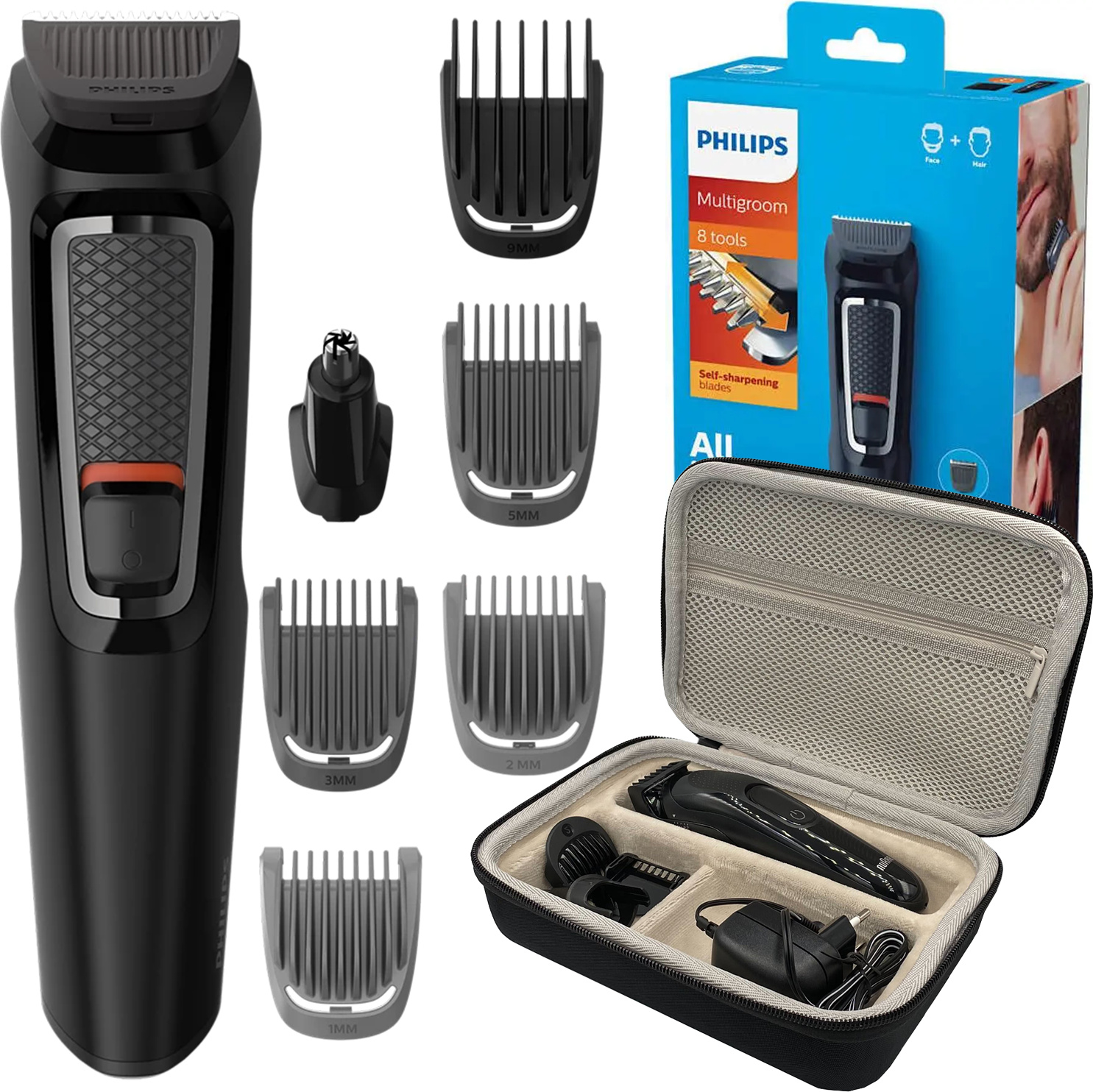 EAN: 5905701127122 - Philips 8in1 Friseur-RasiererFriseurset mit ReiseetuiDer Philips 8in1-Haarschneider ist ein praktisches Gerät, mit dem Sie zu Hause einfach und präzise Haare schneiden können.Mit mehreren Aufsätzen, selbstschärfenden Klingen und einer langen Akkulaufzeit können Sie Ihre Frisur ganz nach Ihren Wünschen gestalten. Es handelt sich um ein komplettes Friseurset, das auch für das Trimmen von Bärten und die Körperpflege geeignet ist.Wichtigste Produktmerkmale 8in1 Haarschneider- vielseitig einsetzbar: Haare, Bart und Körper.Selbstschärfende Klingen- immer scharf und für viele Jahre einsatzbereit. Umfangreiches Zubehörset - 8 Aufsätze und Nasen- und Ohrentrimmer. Reiseetui- praktische Aufbewahrung und Sicherheit für unterwegs.Scheren- und Kamm-Set- komplettes Haarschneideset+ Praktisches Etui für Rasiermesser und ZubehörSelbstschärfende KlingenDie Klingen aus rostfreiem Stahl berühren sich beim Schneiden sanft, so dass sie sich gegenseitig schärfen und auch nach mehrjährigem Gebrauch effektiv bleiben.VielseitigkeitDer Rasierer ist in erster Linie für das Schneiden von Kopfhaar konzipiert, eignet sich aber ebenso gut für das Trimmen von Bärten, Nacken und Haaransätzen. Er ist die ideale Wahl für alle, die ein einziges Gerät für mehrere Aufgaben suchen.SpezifikationenPhilips 8in1-HaarschneiderNasen- und Ohrhaartrimmer1 Bartaufsatz (3 mm - 7 mm)2 Bartaufsätze (1 mm, 2 mm)3 Haaraufsätze (9 mm - 16 mm)Selbstschärfende Klingen aus rostfreiem Stahl8 Aufsätze im ... Ein gutes Angebot für ein neues Gerät mit Etui und 9 Aufsätzen, was eine umfassende Ausstattung verspricht. ![]() ![]() NEU Philips - Rasierer MG3730 eBay Bart Haartrimmer Schwarz mit Etui 9 Aufsätze Akku