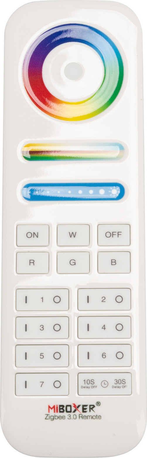 Kategorie: Sonstige Elektroinstallationsartikel - Miboxer - GTIN:4063592024874 - Batteriebetriebener Zigbee 3.0 Bewegungsmelder von MiBoxer Steuern Sie Ihre Tuya-basierten Smartlife-Geräte mithilfe des MiBoxer-PIR-Bewegungsmelders. Dank des modernen Zigbee 3.0 Funkstandards hat der Bewegungsmelder eine besonders lange Batterielebensdauer. Zusätzlich überwacht das Gerät die Batteriekapazität selbstständig und warnt Sie automatisch, wenn die Batterie einen niedrigen Ladezustand hat. Die Montage mithilfe der magnetischen Halterung besonders einfach und benötigt keine Kabel. Zur Inbetriebnahme des Bewegungsmelders ist ein Zigbee-Gateway und eine Batterie vom Typ CR123A 3V notwendig. Beide Produkte sind nicht im Lieferumfang enthalten - 26,45 Euro bei longlife-led - gefunden von billiger.de Diese 7-Zonen-Fernbedienung ermöglicht eine intuitive und umfassende Steuerung Ihrer RGB+CCT Beleuchtung. ![]() kaufland.d e MiBoxer RGB+CCT 7-Zonen-Fernbedienung (RGB + 2700-6500K) | Zigbee 3.0 | FUT089Z | Weiss LED-FUT089Z