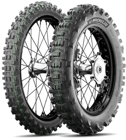 Kategorie: Motorradreifen - Michelin - GTIN:3528706330810 - Der Michelin Enduro Hard Motorradreifen ist speziell für harte und trockene Untergründe entwickelt. Mit seinem robusten Profil sorgt er für maximale Stabilität und hervorragenden Grip, auch unter schwierigen Bedingungen. Der Reifen bietet dir hohe Haltbarkeit und überzeugt durch seine außergewöhnliche Leistung auf festem Boden.Ideal für harte und trockene BödenOptimale Stabilität und KontrolleHohe Haltbarkeit und WiderstandsfähigkeitExzellenter Grip auf festen UntergründenPerfekte Balance zwischen Traktion und LanglebigkeitSpezifikationenHersteller: MichelinProfil: Enduro Hard TReifenbreite: 90Reifenquerschnitt: 100Konstruktion: DiagonalreifenZollgröße: 21Tragfähigkeitsindex: 57 (bis 230 kg)Geschwindigkeitsindex: R (max. 170 km/h)Reifenschlauch: TT (Tube Type)Verstärkt: NeinWeißwand: NeinJahreszeit: SommerreifenLieferumfangEin Reifen (ohne Felge)über den Hersteller MichelinMichelin, gegründet 1889 in Frankreich, gehört zu den weltweit führenden Herstellern von Motorradreifen. Mit über 13 n Erfahrung setzt Michelin Maßstäbe in der Reifenentwicklung, indem es innovative Technologien mit herausragender Qualität kombiniert. Michelin-Motorradreifen zeichnen sich durch exzellenten Grip, hohe Stabilität und erstklassiges Handling aus, sowohl auf der Straße als auch unter anspruchsvollen Rennbedingungen. Besonders hervorzuheben sind die fortschrittlichen Gummimischungen und speziell entwickelte Profildesigns, die für ... Dieses Reifenpaar bietet eine komplette Lösung für Vorder- und Hinterrad mit DOT 2017, ideal für eine umfassende Erneuerung. ![]() ![]() Paar Michelin Enduro Reifen Medium 90/90-21 54R 120/90-18 65R DOT 2017