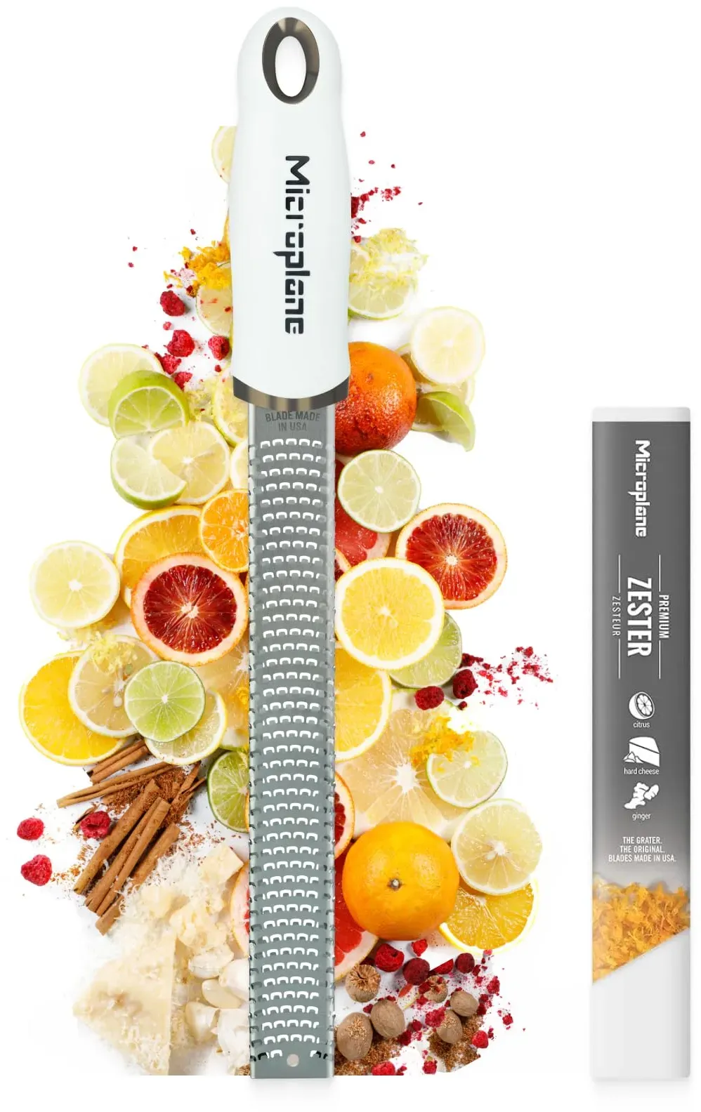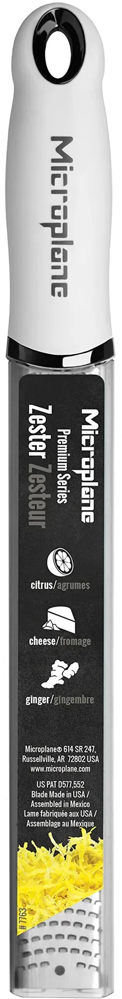 11 Händlerangebote bei billiger.de - Kategorie: Reiben & Küchenreiben - Microplane - Photo-geätzte, langlebige, rasiermesserscharfe Edelstahlklinge - Made in USA. Lieferung inkl. Schutzhülle. Ideal für Zitrone, Orange, Hartkäse, Ingwerwurzel, Schokolade, Muskat, Zimtstange, Trüffel und vieles mehr. Hobby- und Profiköche schätzen den Microplane Klassiker für ein präzises und müheloses Reiben. Ergonomischer soft-touch Griff für maximalen Komfort und Kunststofffüße für mehr Stabilität beim Reiben. Einfach zu reinigen - auch spülmaschinengeeignet. - GTIN:0098399461274 Diese weiße Zester-Reibe ist eine klassische und preiswerte Wahl für jede Küche. ![]() ![]() Microplane Premium Classic Zester-Reibe weiß
