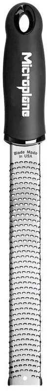 Auf Lager Versand durch AmazonMicroplane Zester Küchenreibe in Schwarz für Zitrusfrüchte, Hartkäse, Ingwer, Schokolade & Muskatnuss mit feiner Edelstahlklinge - Made in USA