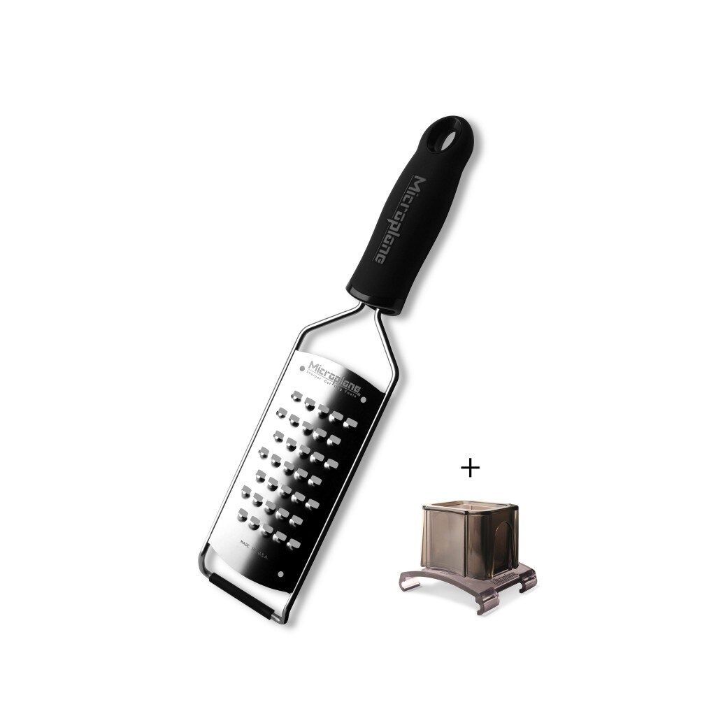 Zustand: Neu - Zester - Microplane - 36089E - EAN: 0098399360898 - Set bestehend aus Zester und sehr grober Reibe in einer Geschenkbox. Rasiermesserscharfe Edelstahlklinge - Made in USA -. Lieferung inkl. Schutzhüllen Eleganter Walnussholz-Griff aus Kentucky USA. Robuste und stabile Konstruktion mit massivem Edelstahlrahmen. Ideal für Zitrone und Orange, Parmesankäse, Muskat, Kartoffeln, Karotten, Zucchinis und vieles mehr. Rutschfester Gummifuß für stabilen Halt und sicheres Arbeiten. - Verkäufer: Amazon im amazon.de Marketplace Ein umfassendes Gourmet Reiben Set mit feiner und sehr grober Reibe sowie Halter für vielseitige Anwendungen. ![]() Microplane Gourmet Reiben Set: Reiben fein + sehr grob + Halter