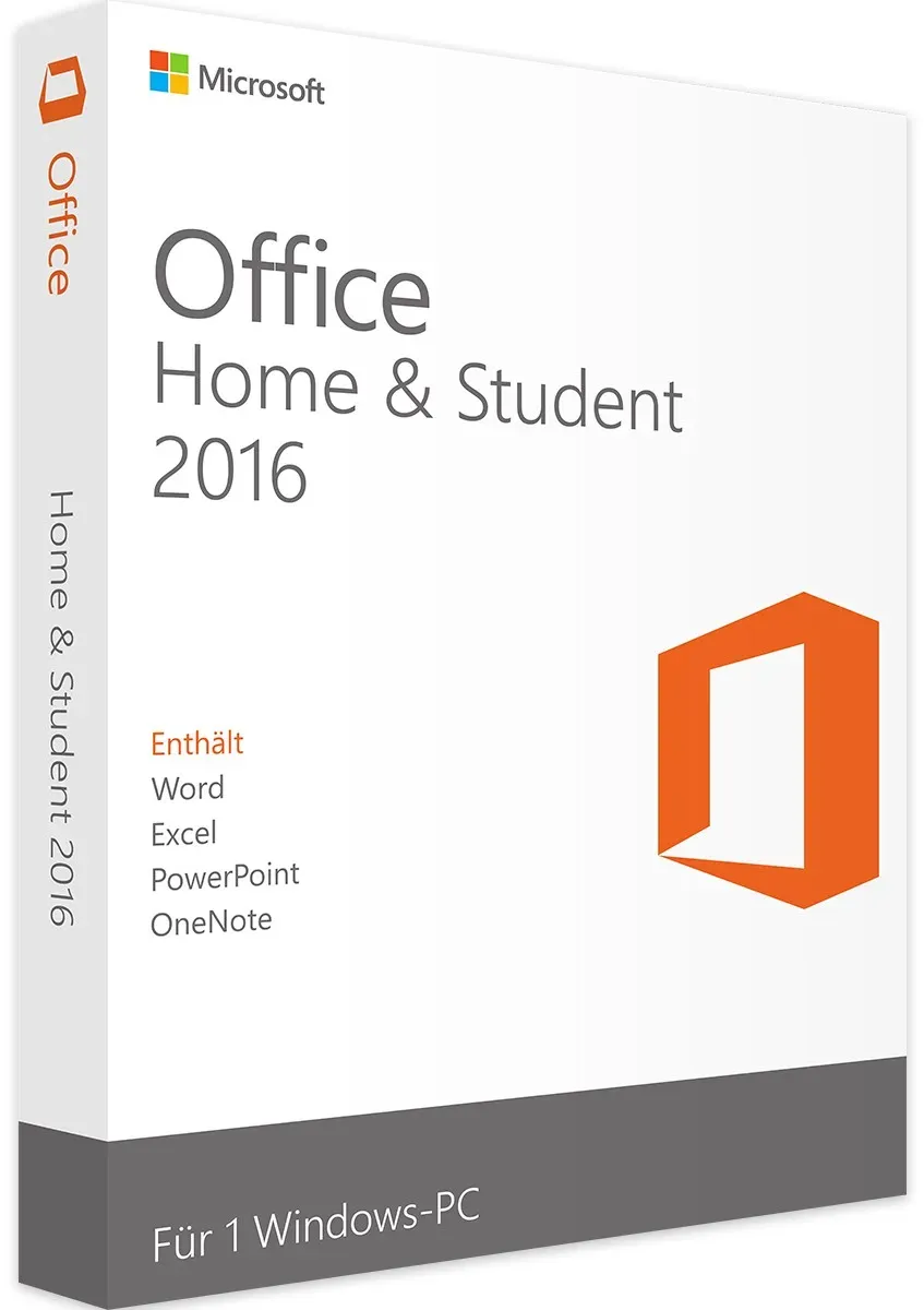 Kategorie: Office-Software - Microsoft - GTIN:0885370988321 - Office 2016 Home & Student. Office 2016 Home & Student Das perfekte Paket für Privatanwender. Office 2016 Home & Student ist die ideale Lösung für private Anwender, die ein kostengünstiges und zugleich leistungsstarkes Office-Paket benötigen. Ob für Einladungen, private Korrespondenz oder die Verwaltung von Haushaltsfinanzen mit dieser Software sind Sie bestens ausgestattet. Die Lizenz ist jedoch ausschließlich für die private Nutzung vorgesehen und darf nicht gewerblich eingesetzt werden.. Die wichtigsten Programme in Office 2016 Home & Student. Das Paket enthält alle zentralen Programme, die für den privaten und schulischen Gebrauch unverzichtbar sind:. Microsoft Word 2016. Microsoft Excel 2016. Microsoft PowerPoint 2016. Microsoft OneNote 2016. Mit diesen Programmen lassen sich zahlreiche Aufgaben effizient erledigen. Word und Excel eignen sich für Textverarbeitung und Tabellenkalkulation. PowerPoint ist ideal für ansprechende Präsentationen, während OneNote ein nützliches Tool zur Erstellung und Organisation von Notizen bietet besonders praktisch für Schüler und Studenten, die Hausarbeiten, Vorträge und Diagramme erstellen müssen.. Neue Funktionen für eine noch effizientere Arbeitsweise. Office 2016 Home & Student ist mit zahlreichen neuen Funktionen ausgestattet, die den Arbeitsfluss erheblich verbessern. Der Tell-Me -Suchassistent erleichtert die Navigation durch die Programme, indem er Ihnen die ... Ein attraktives Angebot für Mac- und Windows-Nutzer mit Sofortdownload und Key. ![]() ![]() Microsoft Office 2016 Home and Student | Mac / Windows | Sofortdownload + Key
