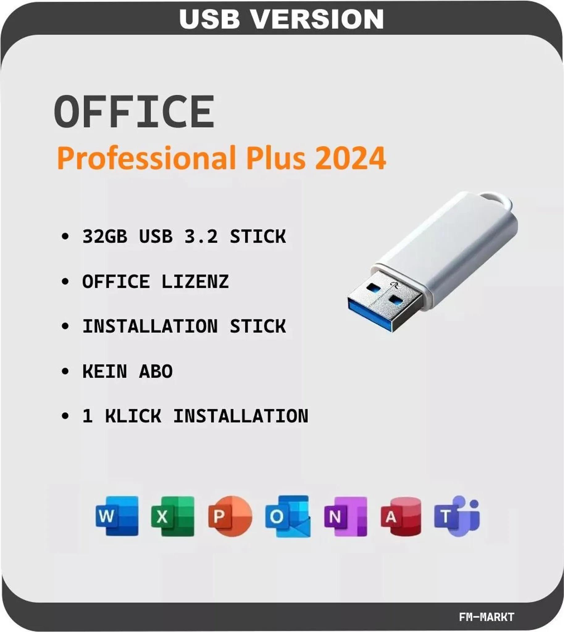 EAN: 4262561182311 - Dieser 32GB USB-Installationsstick bietet eine schnelle und unkomplizierte Möglichkeit, Microsoft Office 2024 auf Ihrem PC zu installieren. Alle benötigten Installationsdateien befinden sich bereits auf dem Stick inklusive gültigem Lizenzkey. Dank der leicht verständlichen Installationsanleitung gelingt die Einrichtung sowohl Einsteigern als auch Profis ohne Schwierigkeiten.Die Office-Suite umfasst alle wichtigen Programme für produktives Arbeiten im Alltag: Microsoft Word, Excel, PowerPoint, Outlook, OneNote, Publisher, Access sowie Skype. Teams kann zusätzlich installiert werden, wenn gewünscht Letzte Details: - 32GB USB Installation Stick - OFFICE 2024 + Installationsanleitung - inkl. Lizenzkey zur Aktivierung - Hilfe & Support bei Installationsproblemen - bei kaufland.de - aus Yadore Produktdaten Dieses Angebot ist eine LTSC-Version mit Lifetime-Gültigkeit, ideal für Nutzer, die eine langfristige und stabile Lösung suchen. ![]() ![]() Microsoft Office 2024 Professional Plus LTSC - Lifetime