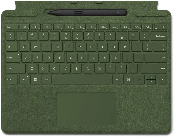 Verfügbarkeit: Auf Lager - Kategorie: Zubehör für Tablet PCs - Microsoft - GTIN:0889842773088 - Tippen Sie mit dem ultra-dünnen und kompakten Surface Pro Signature Type Cover bequem ein Schlank, kompakt und anpassbar €“ Surface Pro Signature Type Cover mit einer vollständig mechanischen Tastatur mit Hintergrundbeleuchtung Einem großzügig dimensionierten Trackpad für eine präzise Navigation - 245,00 Euro bei Amazon Marketplace CE - gefunden von billiger.de Für 287.89 Euro erhalten Sie das Surface Pro Signature Keyboard in Waldgrün mit Slim Pen 2, eine auffällige Farbvariante. ![]() ![]() Microsoft Surface Pro Signature Keyboard (Waldgrün) im Bundle mit Slim Pen 2 | kompatibel mit Surface Pro (11. Edition), Surface Pro 9 & Surface Pro 8