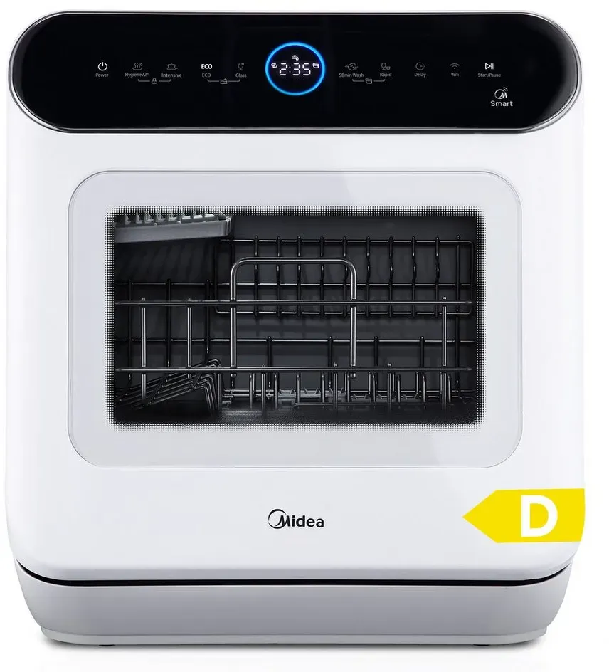 3 Händlerangebote bei billiger.de - EEK: D - Kategorie: Geschirrspüler - Midea - Funktioniert mit/ohne Wasseranschluss: Der Midea Tischgeschirrspüler ermöglicht Ihnen dank des integrierten 6-Liter-Wassertanks maximale Flexibilität bei der Nutzung. Egal ob Sie ihn direkt an den Wasserhahn anschließen oder den Wassertank befüllen, dieser kompakte Geschirrspüler bietet Ihnen in jeder Umgebung den gewünschten Komfort und praktischen Nutzen. Integrierter Wasserenthärter: Mit dem integrierten Wasserenthärter verhindern Sie Kalkablagerungen auf Ihrem Geschirr. Egal, ob es sich um Teller, Gläser oder Besteck handelt mit dem Midea Mini Geschirrspüler sehen Ihre Küchenutensilien immer makellos aus. Automatischer Türöffner und Luftzirkulator für effizientes Trocknen:Am Ende jedes Zyklus öffnet sich die Tür automatisch, und der integrierte Turbolüfter lässt den Dampf schnell entweichen. So trocknet dein Geschirr noch schneller und ist im Handumdrehen bereit zum Wegräumen. Genieß die Effizienz und spare wertvolle Zeit! Smarte Steuerung per App: Die IOT-Funktion ermöglicht die bequeme Steuerung und überwachung aller Waschvorgänge über die SmartHome-App. Sie erhalten klare Fakten und Zahlen über den Wasser- und Stromverbrauch. Hinweis: Alle Geschirrspüler werden im Werk getestet, um einen ordnungsgemäßen Betrieb zu gewährleisten, daher ist es normal, dass sich kleine Mengen an Restwasser im Gerät befinden. - GTIN:4048164118984 ![]() ![]() Midea Tischgeschirrspüler für 3 Gedecke, mit und ohne Wasseranschluss Verwendbar, IOT-Steuerung, 6+1 Programme, Touch Control, Mini Geschirrspüler für Wohnungen, Schlafsäle und Wohnmobile