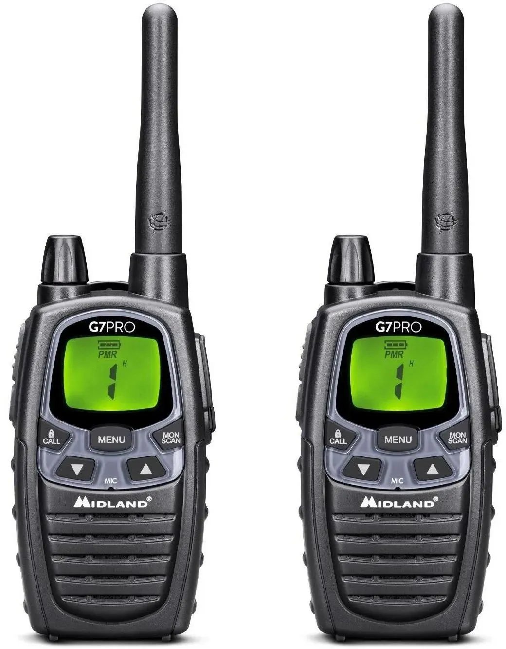 Auf Lager Versand durch AmazonMidland G7 Pro PMR+LPD-Funkgerät C1090.13 Robustes Gerät für die Professionelle oder Private Nutzung, mit LCD-Display, inklusive Doppelstandlader und Gürtelclips, 2 Stück im Set