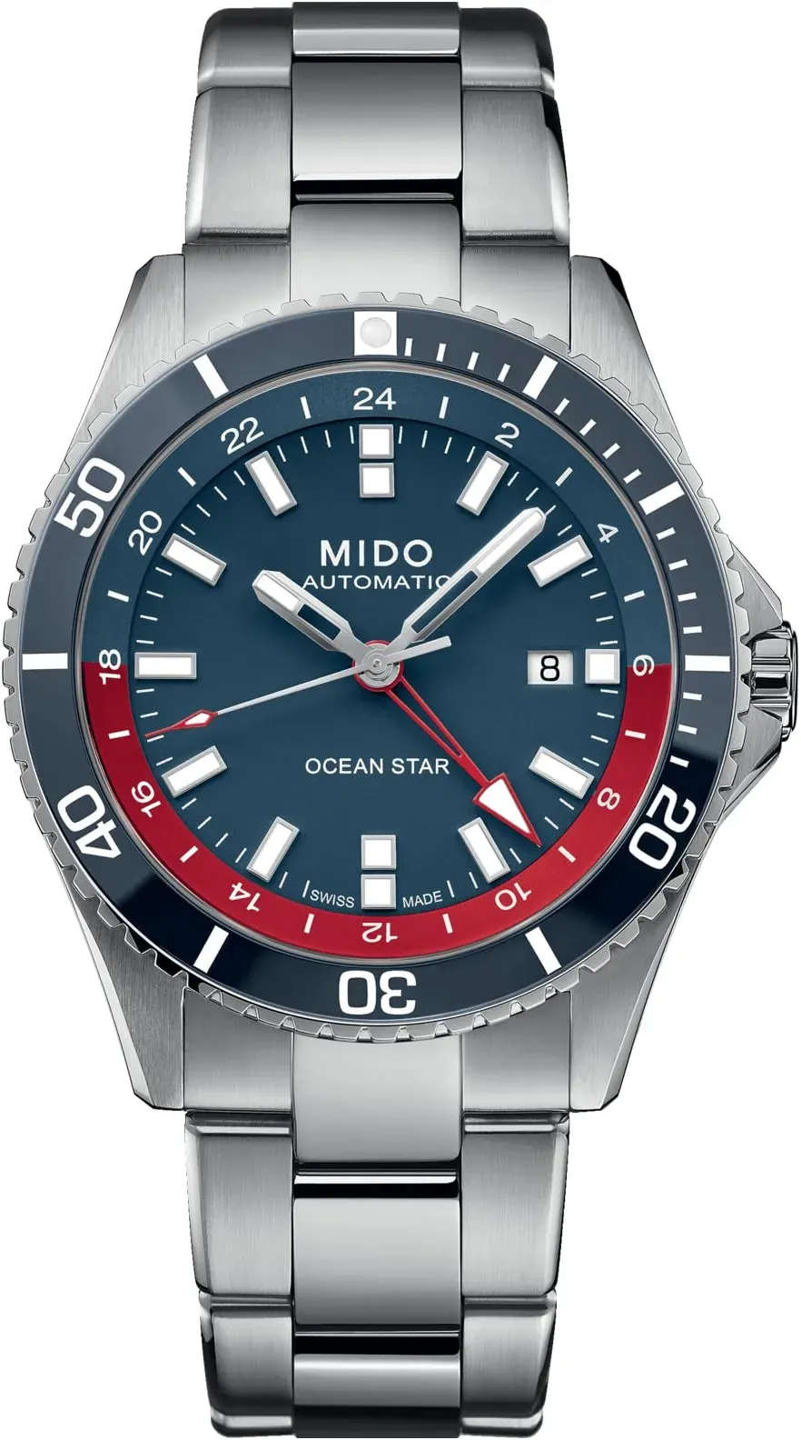 Verfügbarkeit: Gewöhnlich versandfertig in 2 bis 3 Tagen - Kategorie: Herrenuhren - Mido - GTIN:7612330137641 - GEHäUSE - Gehäuse aus: Edelstahl - Form des Gehäuses: Rund - Farbe des Gehäuses: Anthrazit - Glas: Saphirglas - 1390,00 Euro bei Amazon Marketplace Watches - gefunden von billiger.de Die Ocean Star GMT ist perfekt für Reisende, da sie eine zweite Zeitzone anzeigen kann und ein robustes Taucheruhren-Design besitzt. ![]() ![]() MIDO Ocean Star GMT €“ Schweizer Automatikuhr für Herren €“ 44 mm Edelstahlgehäuse mit drehbarer Lünette, Blau und Rot auf Edelstahl, Taucheruhr