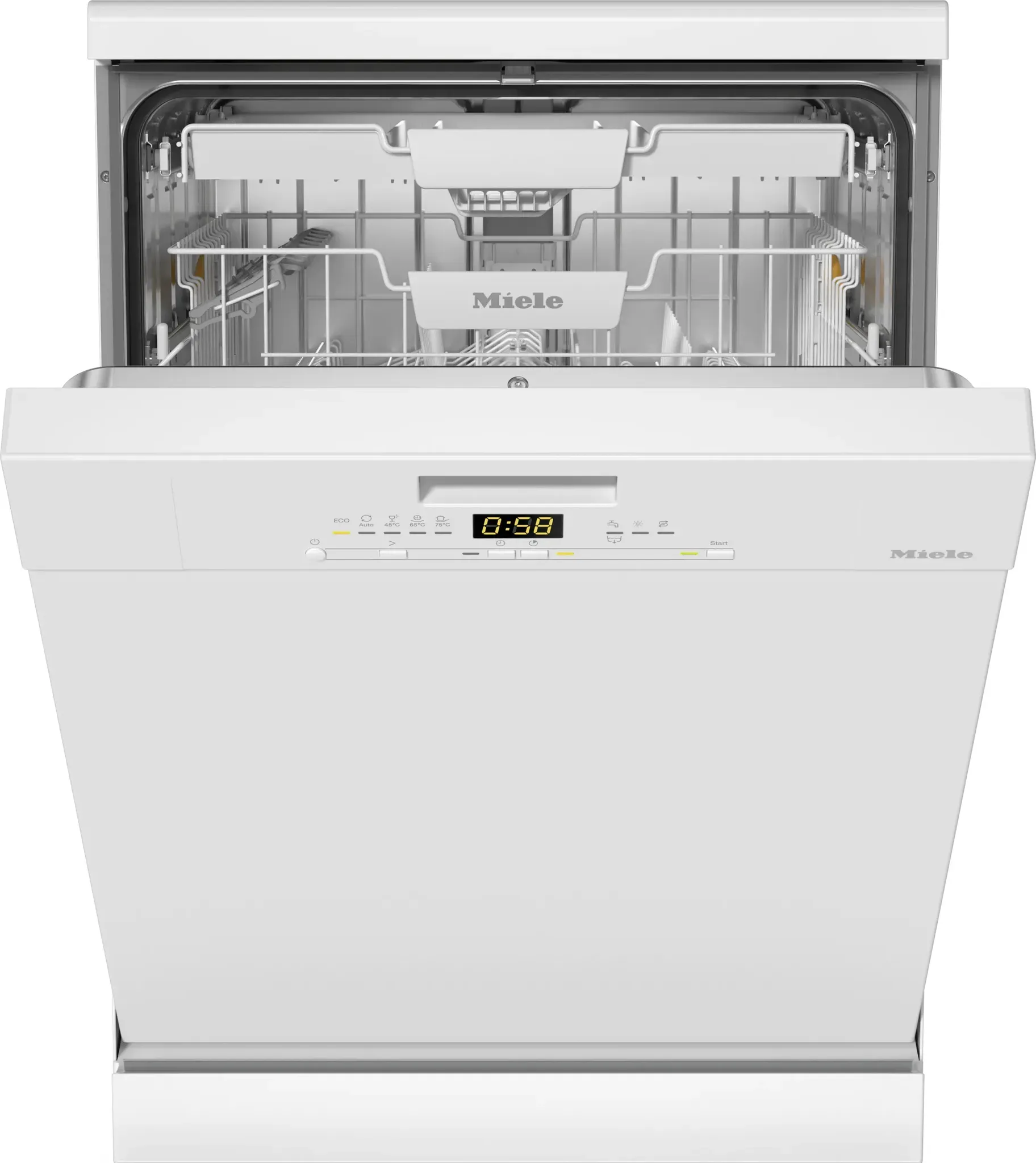 Miele - EAN: 4002516903352 - Miele G 5611 SC Active Stand-Geschirrspüler, 14 Maßgedecke, Brillantweiß Highlights: - AutoOpen-Trocknung - Alles trocken: Am Ende des Spülprogramms öffnet sich die Tür des Geschirrspülers automatisch. - EcoPower-Technologie - Spart Wasser und Energie: Effiziente Ressourcenschonung durch clever gestalteten Wasserzufluss. - ComfortClose - Praktisch: Die Tür lässt sich besonders leicht öffnen und schließen und bleibt in der gewünschten Position stehen. - Warmwasseranschluss - Bis zu 35 % Stromersparnis: Jeder Miele Geschirrspüler verfügt über einen Warmwasseranschluss bis 60 C. - Frischwasserspüler - Minimaler Verbrauch bei guten Ergebnissen: Im Programm Automatic schon ab 6 Liter Wasserverbrauch. - QuickPowerWash - Kurzprogramm: Gründliche Reinigung für normal verschmutztes Geschirr in 58 Minuten. - FlexAssist Markierungen - Optimale visuelle Unterstützung: Farbige Kennzeichnung der flexiblen Elemente zur individuellen Korbgestaltung. - Brilliant GlassCare - Behutsam und werthaltig: Mit Brilliant GlassCare werden Ihre Gläser schonend gepflegt. - Waterproof-System (WPS) - Doppelt hält besser: Bei Leckagen stoppt ein zweites Magnetventil den Wasserzulauf direkt am Wasserhahn. - bei saturn.de - aus Yadore Produktdaten ![]() MIELE G 5611 SC Active Geschirrspüler (Standgerät, 598 mm breit, 45 dB (A), A)