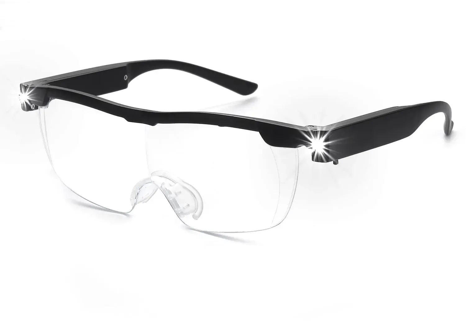 Auf LagerOKH Lupenbrille mit Licht, Wiederaufladbare LED Beleuchtete Vergrößerung Brillen, Anti Blaulicht, Mighty Bright Sight Hands Free Lupe für Naharbeit, Handwerk, Juweliere, Lesen, Hobby