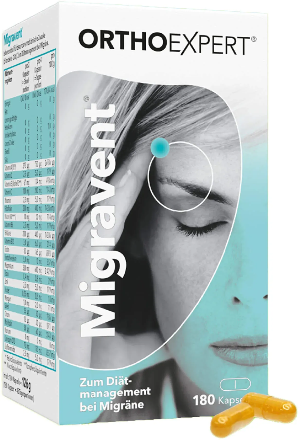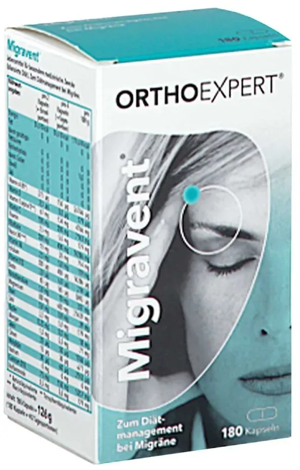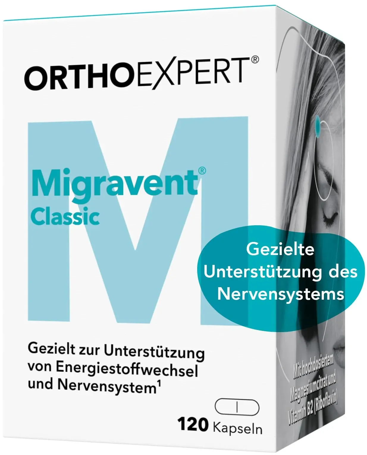 Ortho expert - Anwendungsgebiet von Migravent KapselnMigravent zum Diätmanagement bei Migräne.Migränepatienten haben nachweislich häufig erniedrigte Magnesium-, Riboflavin- und Coenzym Q10-Werte. Allein durch ausgewogene Ernährung ist es Migränepatienten nicht möglich, ihr spezifisches Defizit an Magnesium, Riboflavin und Coenzym Q10 auszugleichen.Migravent Kapseln enthalten eine gezielte Kombination ausgewählter Mikronährstoffe, z.B. Magnesium, Riboflavin und Coenzym Q10, die auf den besonderen Bedarf von Migränepatienten abgestimmt ist. Diese Bedarfsdeckung ist durch klinische Daten bei Migränepatienten belegt.Zum Diätmanagement bei Migräne sollte Migravent regelmäßig und langfristig eingenommen werden.Migravent Kapseln enthält Magnesium, Riboflavin und Coenzym Q10, weitere Vitamine und Mineralstoffe sowie Bioflavonoide.Lebensmittel für besondere medizinische Zwecke (bilanzierte Diät). Zum Diätmanagement bei Migräne. Aufgrund des erhöhten Bedarfs in dem besonderen Anwendungsbereich sind Magnesium, alle weiteren Mineralstoffe und Vitamine erhöht.Die Zusammensetzung ist spezifisch auf den Nährstoffbedarf von Personen mit Migräne abgestimmt. Diese Bedarfsdeckung ist durch klinische Daten bei Migränepatienten belegt.Wirkstoffe / Inhaltsstoffe / ZutatenZutaten von Migravent Kapseln:Magnesiumoxid Riboflavin (Vitamin B2) überzugsmittel: Hydroxypropylmethylcellulose (Kapselhülle)Vitamin C Coenzym Q10 Vitamin E Zinkgluconat Kartoffelstärke Selenhefe Trennmittel: Magnesiumsalze ... Dieses Angebot ist mit 27.67 Euro das günstigste für 120 Kapseln Migravent Classic. ![]() ![]() weber & weber gmbh MIGRAVENT Classic Kapseln 120 St