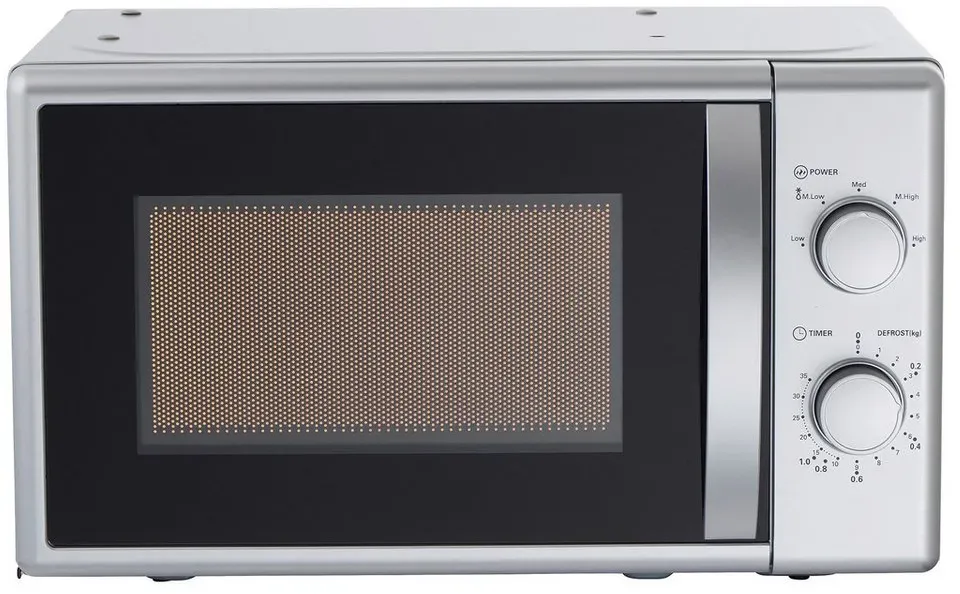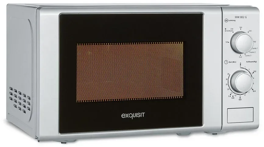 lieferbar-in 2-3 Werktagen bei direxquisit Mikrowelle MW 802 G, Grill, 20,00 l, 700 Watt, Kompakt, 1000 Watt Grillfunktion, 25,5cm Drehteller, Timer silberfarben