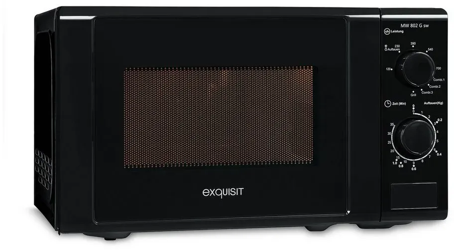 lieferbar-in 2-3 Werktagen bei direxquisit Mikrowelle MW 802 G, Grill, 20,00 l, 700 Watt, Kompakt, 1000 Watt Grillfunktion, 25,5cm Drehteller, Timer schwarz