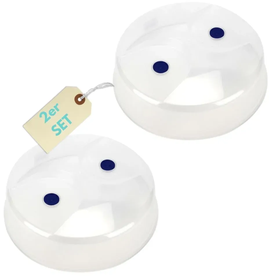 Auf Lager Versand durch AmazonKigima Mikrowellen-Abdeckung 24,5 cm 2er Set ? Runde Mikrowellenhaube mit Entlüftungslöchern ? Praktische Microwellenabdeckungen aus robustem Plastik (BPA-Frei) ? Stapelbare Abdeckhaube für Mikrowelle