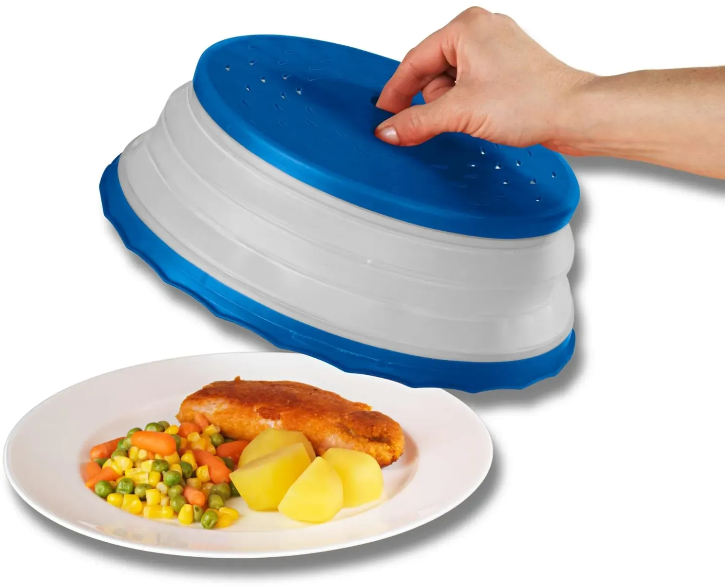 Kategorie: Küchengeräte-Zubehör - VAIAV - SICHERES MATERIAL Die mikrowellen deckel besteht aus weichem und elastischem Silikon, ist BPA-frei und ungiftig, umweltfreundlich und hochtemperaturbeständig. Food cover kann zum Erhitzen von Speisen verwendet werden, ohne sich Gedanken über physische Schäden machen zu müssen. FALTBARES DESIGN Sie können ihn bei Gebrauch aufklappen und bei Nichtgebrauch wegklappen. Mikrowelle haube können bis zu einer Höhe von ca. 3 cm zusammengeklappt werden, wodurch viel Platz in der Küche gespart wird. Mikrowellenabdeckung Kann leicht in jedem Schrank und passt auf die meisten Teller und Schüsseln. SPRITZER VERHINDERN Der abdeckhaube mikrowelle schützt Ihre Mikrowelle vor Spritzern und Flecken. Mikrowellen haube fungiert auch als Hitzeschild, um zu verhindern, dass heiße Luft entweicht, und hält Lebensmittel ohne Abkühlung frisch. Microwave lid kann auch als sieb oder waschkorb zum waschen oder abtropfen von obst und gemüse verwendet werden. EINFACH ZU VERWENDEN Die aufheizzeit der mikrowelle sollte fünf minuten nicht überschreiten. Legen sie den abdeckung mikrowelle auf eine schüssel oder erweitern sie ihn über einen teller. Dieser mikrowelle abdeckhaube kann einfach in der Spülmaschine gereinigt werden. Sie nimmt keinen zusätzlichen Platz in Anspruch und lässt sich leicht verstauen PRODUKTGRöSSE Die mikrowellenabdeckhaube Maße zusammengeklappt (B x H): 26,5 x 3 cm, Maße aufgeklappt (B x H): 26,5 x 8 cm. Die mikrowelle deckel verfügt über ... Diese zusammenklappbare Mikrowellenhaube ist besonders platzsparend und verfügt über einen praktischen Griff. ![]() ![]() 3 PAGEN Mikrowellen Abdeckung zusammenklappbar, Abdeckhaube klappbar, Mikrowellenhaube mit Griff zum Erhitzen von Lebensmitteln, Spritzschutz für die Mikrowelle, platzsparend verstaubar, Blau 27 cm