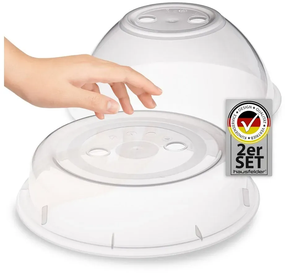 lieferbar-in 2-3 Werktagen bei dirHausfelder Spritzschutzdeckel Mikrowellen Abdeckung (2er Set hoch und flach), (Set, 2-tlg., 1 x Abdeckhaube 28 cm, 11,5 cm hoch, 1 x Deckel, 26,5 cm, 6 cm hoch), Abdeckhaube Mikrowellenhaube