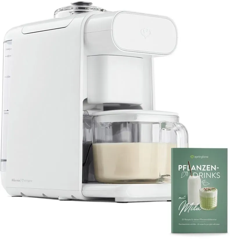 2 Händlerangebote bei billiger.de - Kategorie: Sonstige Küchengeräte - Springlane - VOLLAUTOMATISCHE ZUBEREITUNG Mila ist das Rundum-Pflanzenmilch-Sorglos-Produkt. Dank vollautomatischer Zubereitung war Pflanzenmilch und Sahnealternativen selber machen nie einfacher. Fülle einfach deine Lieblingszutaten in die Mixkammer und drücke auf Start. HEIZ- UND SUPERFEINTECHNIK Milas super feines Mahlwerk rt dir erstklassige Pflanzenmilchergebnisse, die du sofort genießen kannst. 24H TIMER MIT DIGITALANZEIGE Mila ist smart und clever. Dank des 24h Timers programmierst du den Pflanzenmilchbereiter bereits am Vorabend vor und genießt ohne Wartezeit frisch zubereitete Pflanzenmilch am nächsten Morgen. KOSTENERSPARNIS Unnötige Geldausgaben gehören ab sofort der Vergangenheit an - pro 100 ml Pflanzendrink benötigst du nämlich lediglich 3-10 g Zutaten. UNSER VERSPRECHEN Wir wollen, dass du zu 100% zufrieden bist. Deshalb bieten wir einen persönlichen Kundenservice & kostenlosen Rückversand. - GTIN:4056499032875 ![]() ![]() SPRINGLANE Pflanzenmilchbereiter Mila, Sojamilchbereiter, Kochmixer mit Sieb für die Zubereitung pflanzlicher Milchsorten aller Art (0,6 Liter Pflanzenmilchbereiter)