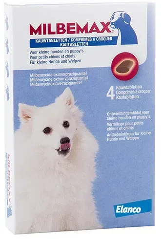 Verfügbarkeit: 2-4 Werktage - 3567.17€ / 1 kg - Kategorie: Tiergesundheit - Novartis - GTIN:5420036926764 - Billig Milbemax Entwurmungstabletten für kleine Hunde und Welpen 4 Tabletten - 10,70 Euro bei Brekz.de - gefunden von billiger.de ![]() ![]() Novartis Milbemax Kautabletten für kleine Hunde und Welpen 4 Tabletten