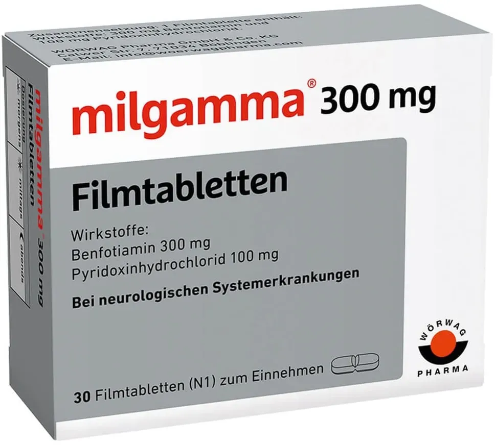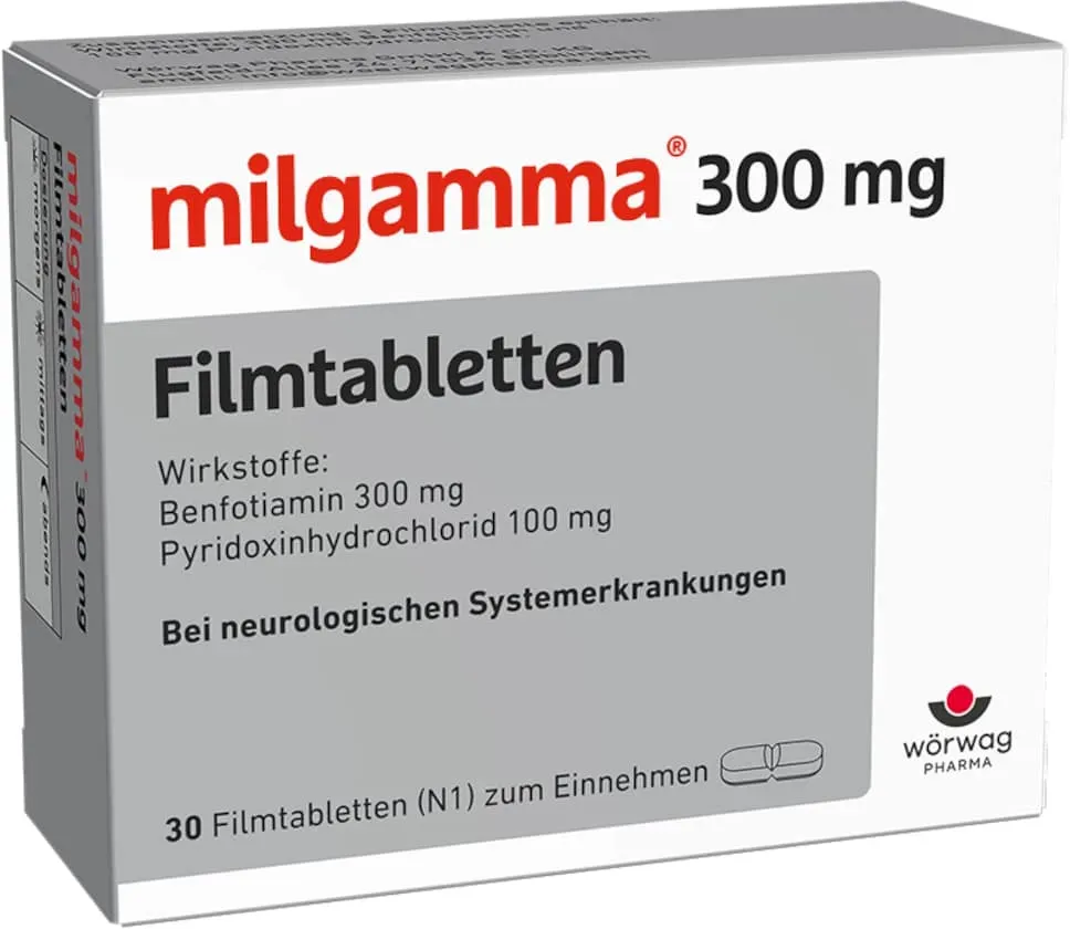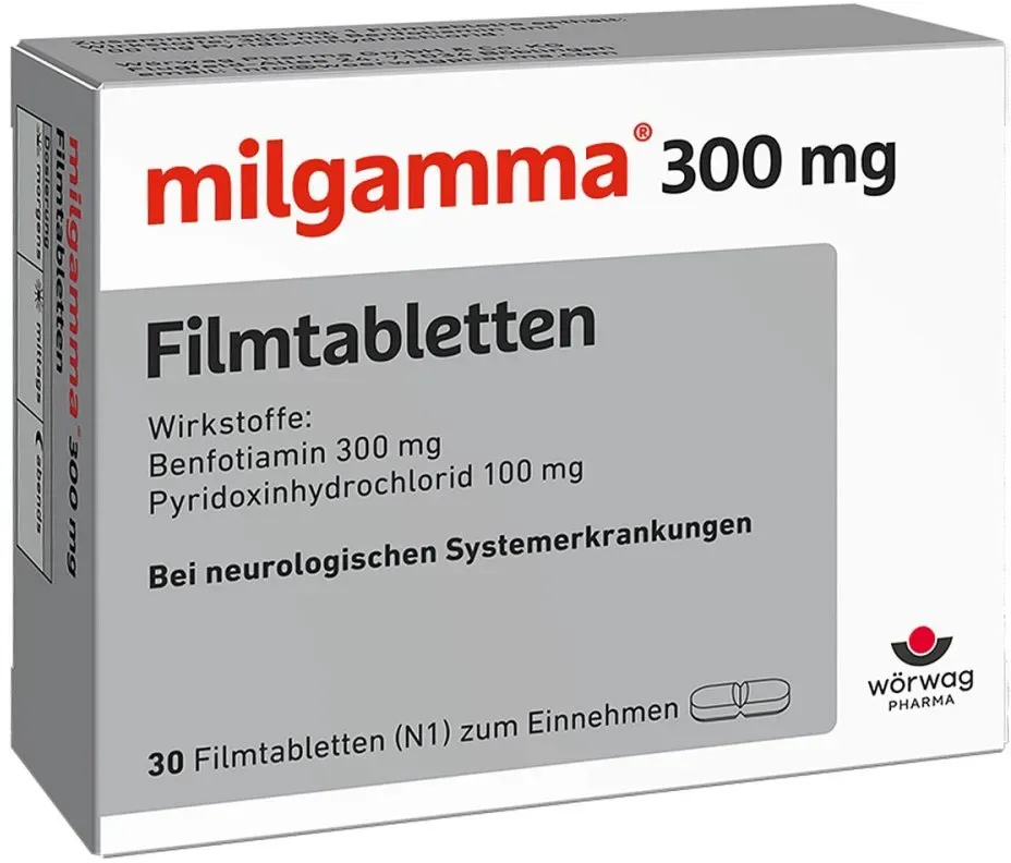 Verfügbarkeit: 1-2 Werktage, 1-2 Werktage - 0,88 €/Stück - Kategorie: Arzneimittel - Wörwag Pharma - GTIN:4150029138805 - PZN:02913880 - MILGAMMA 300 mg Filmtabletten 30 St - 26,25 Euro bei Preisapo - gefunden von billiger.de Mit 27.72 Euro für 30 Tabletten ist dieses Amazon-Angebot eine bequeme und preiswerte Option. ![]() ![]() milgamma® 300 mg Vitamin B1 Filmtabletten mit Benfotiamin 300 mg (eine fettlösliche Vorstufe von Vitamin B1) und Vitamin B6, 30 Stück